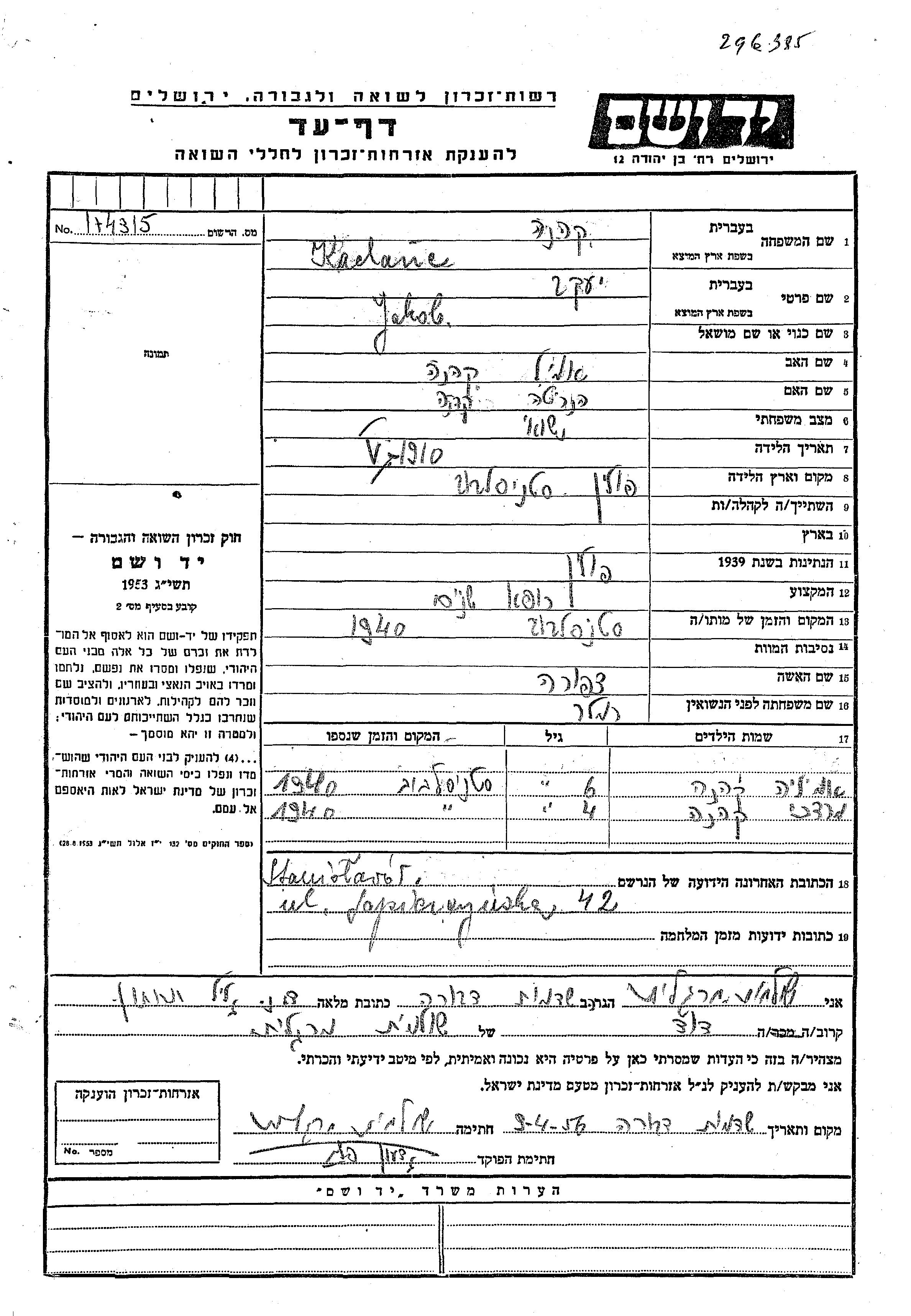 Яд Вашем - Листы свидетельских показаний Мемориального фонда