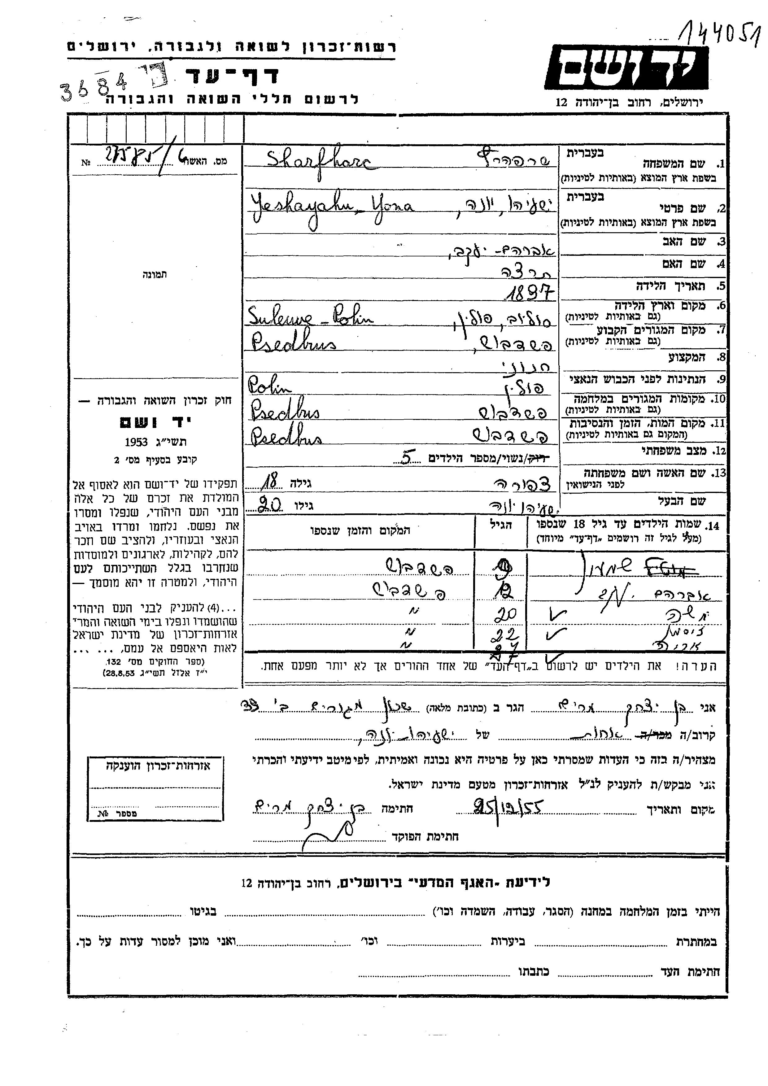 Яд Вашем - Листы свидетельских показаний Мемориального фонда