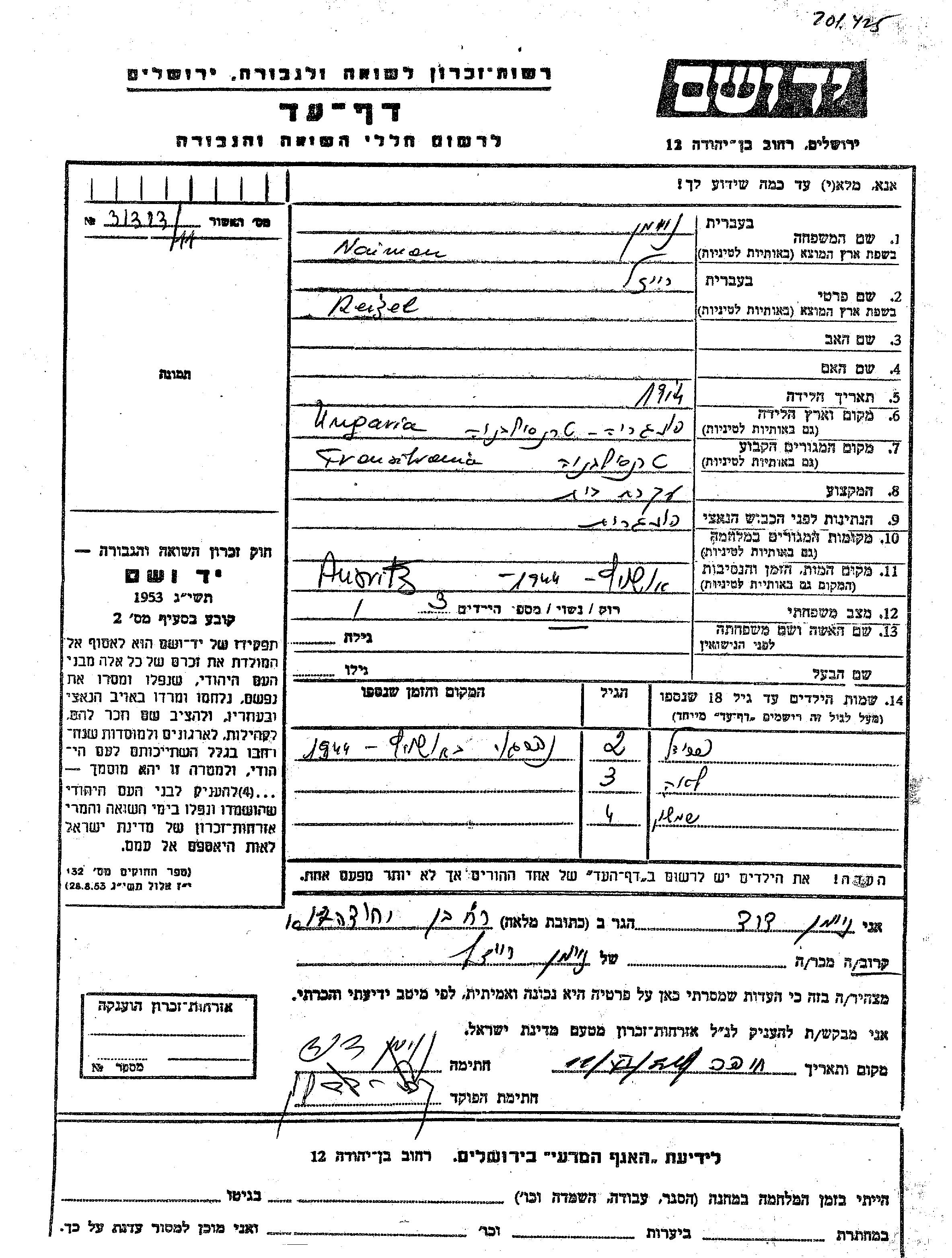 Яд Вашем - Листы свидетельских показаний Мемориального фонда