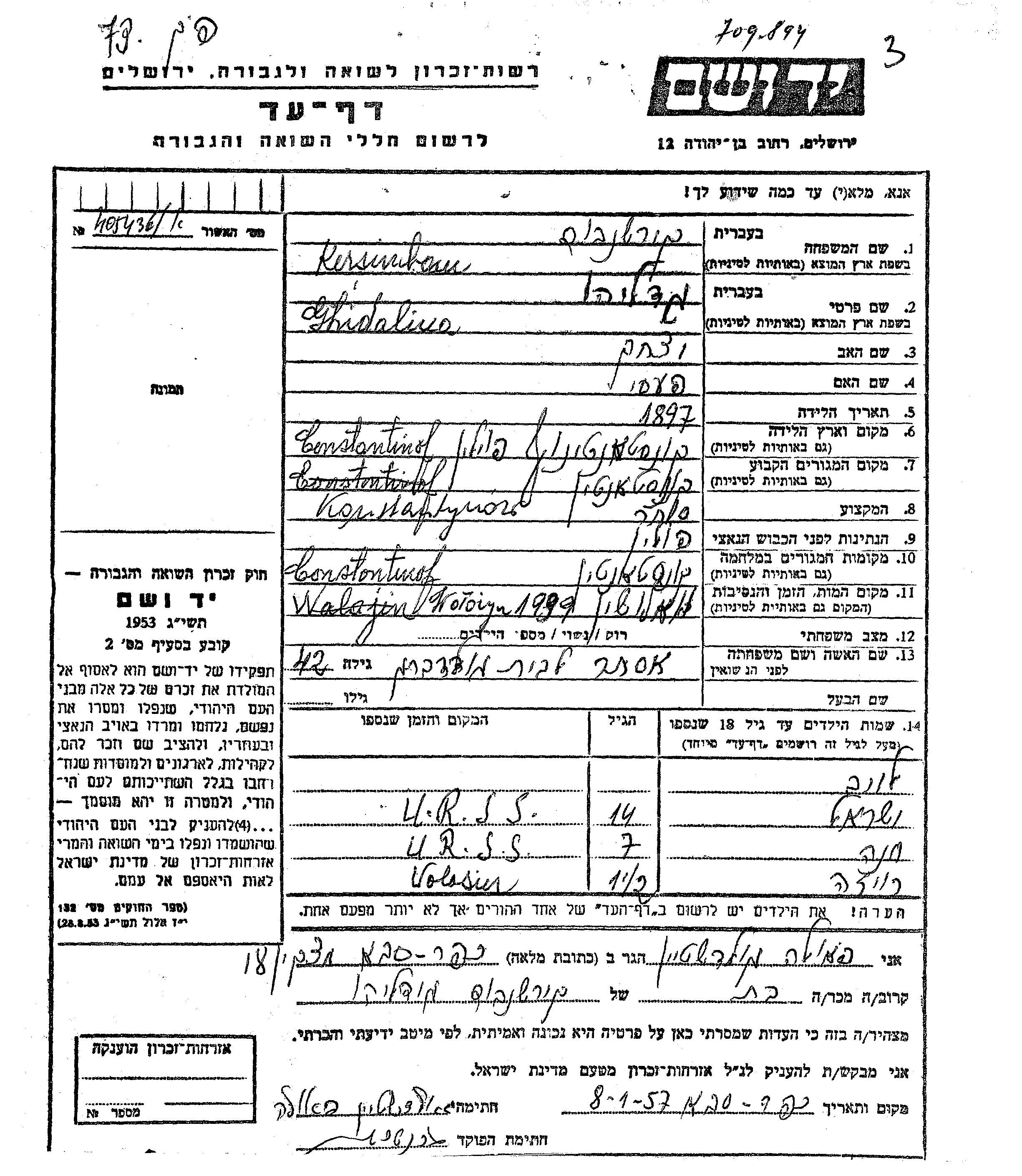 Яд Вашем - Листы свидетельских показаний Мемориального фонда