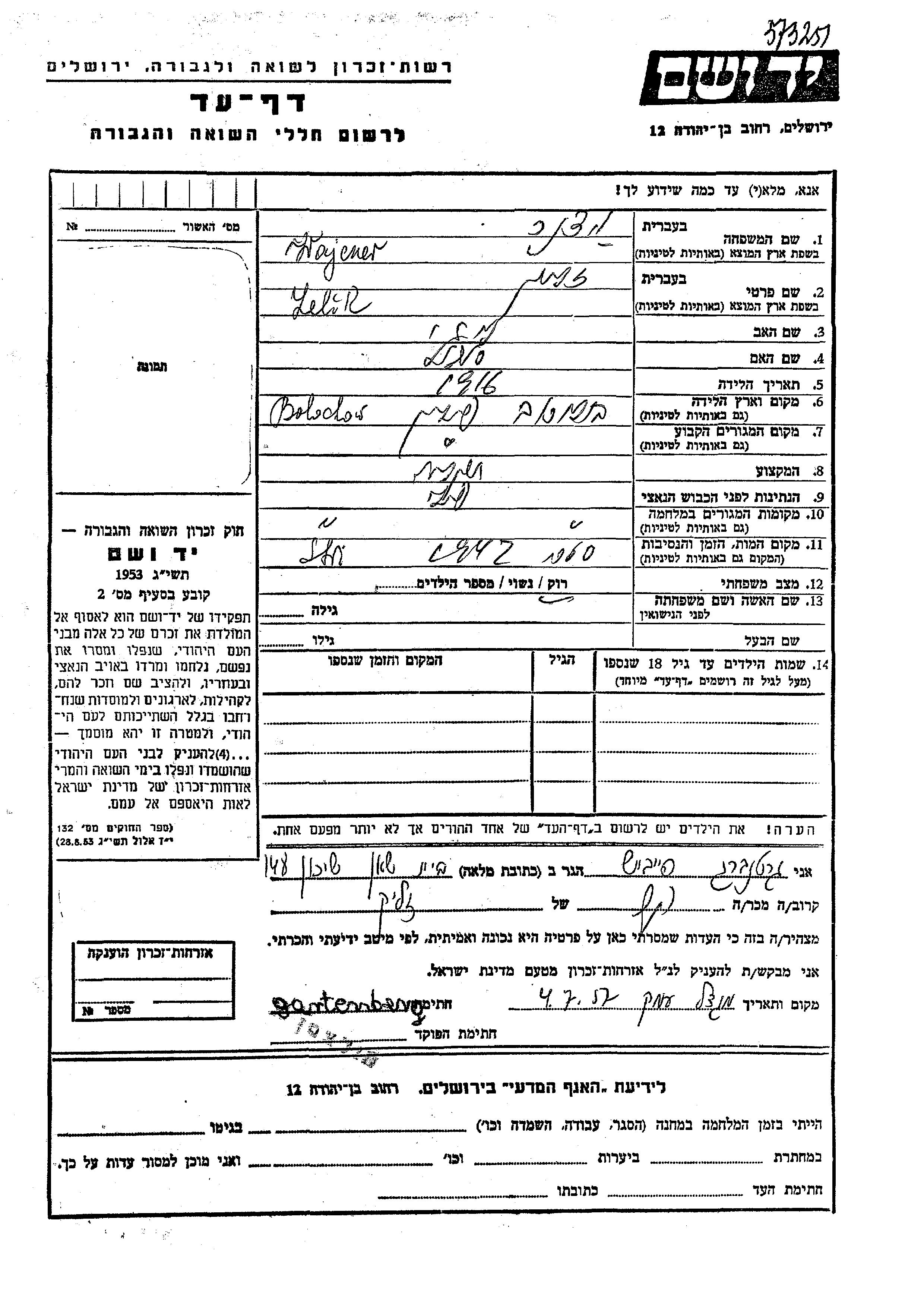 Яд Вашем - Листы свидетельских показаний Мемориального фонда