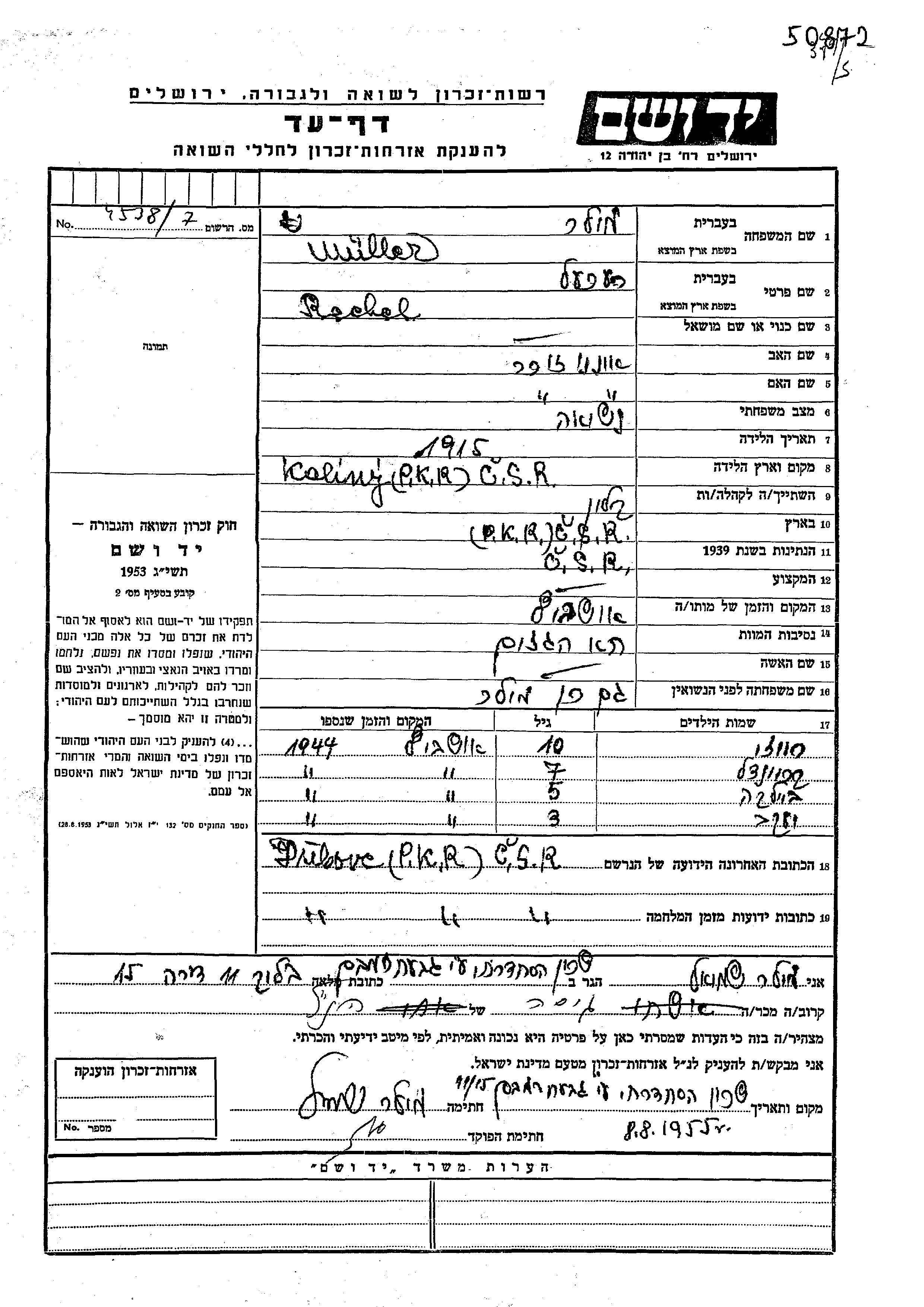 Яд Вашем - Листы свидетельских показаний Мемориального фонда