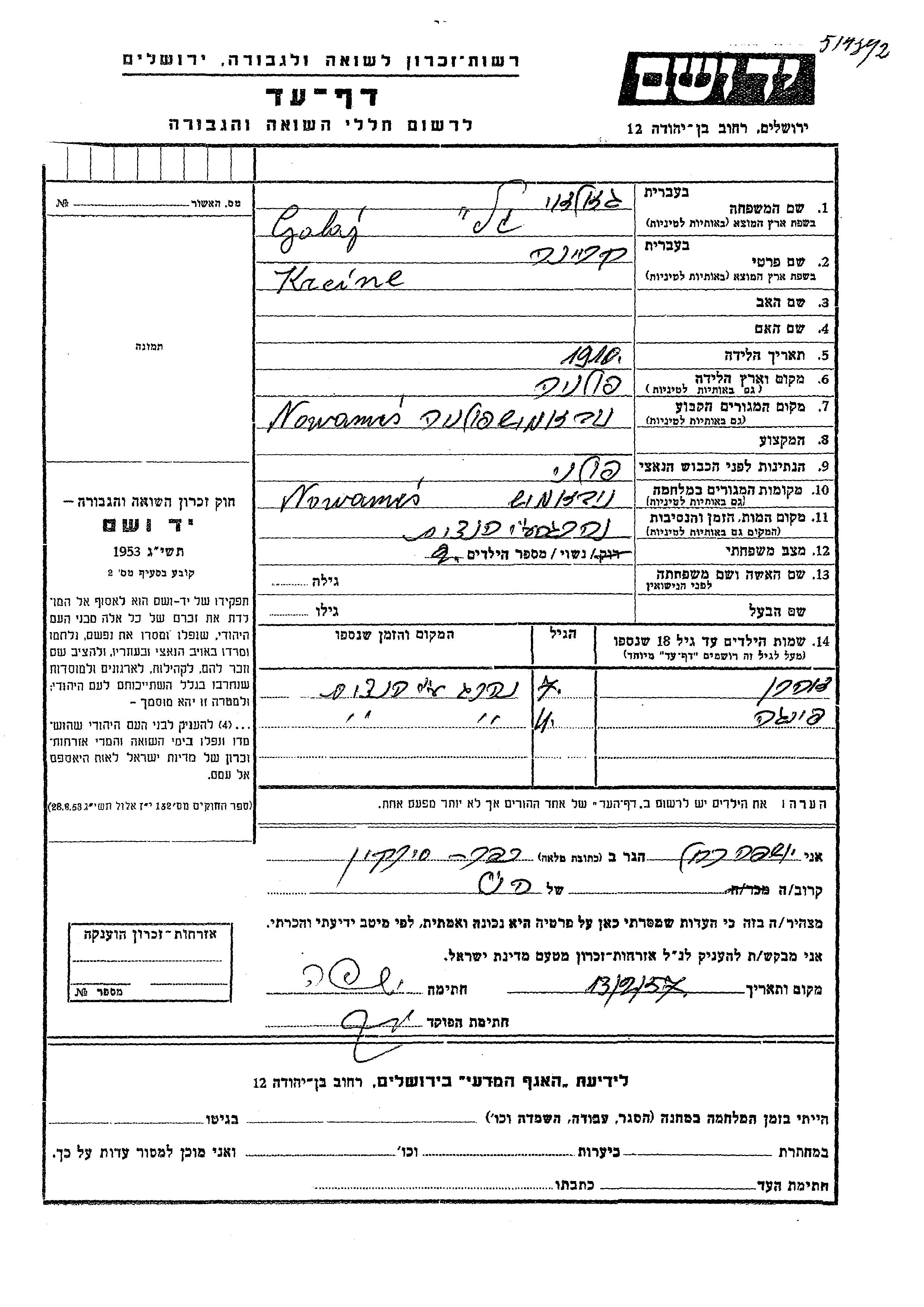 Яд Вашем - Листы свидетельских показаний Мемориального фонда