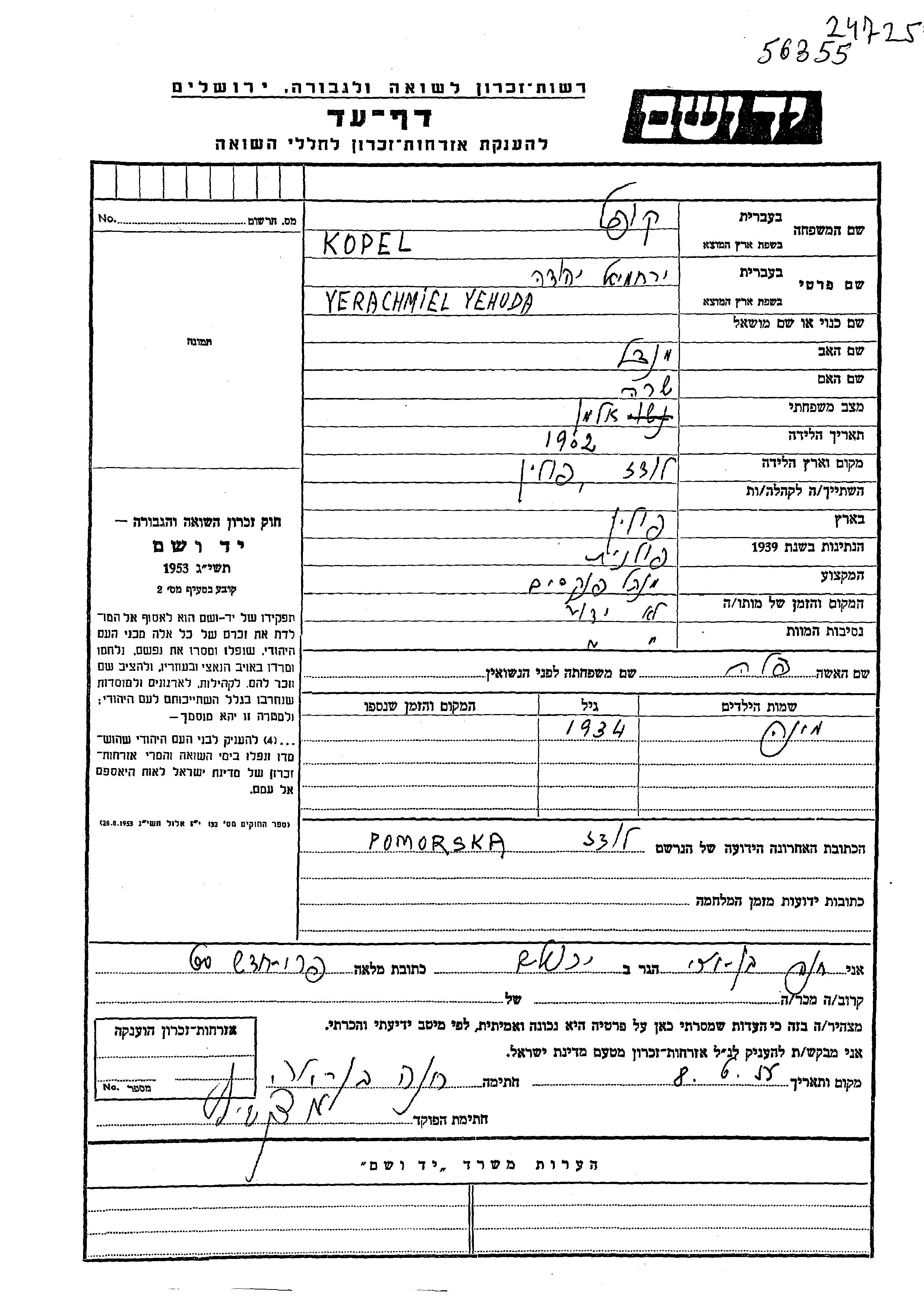 Яд Вашем - Листы свидетельских показаний Мемориального фонда