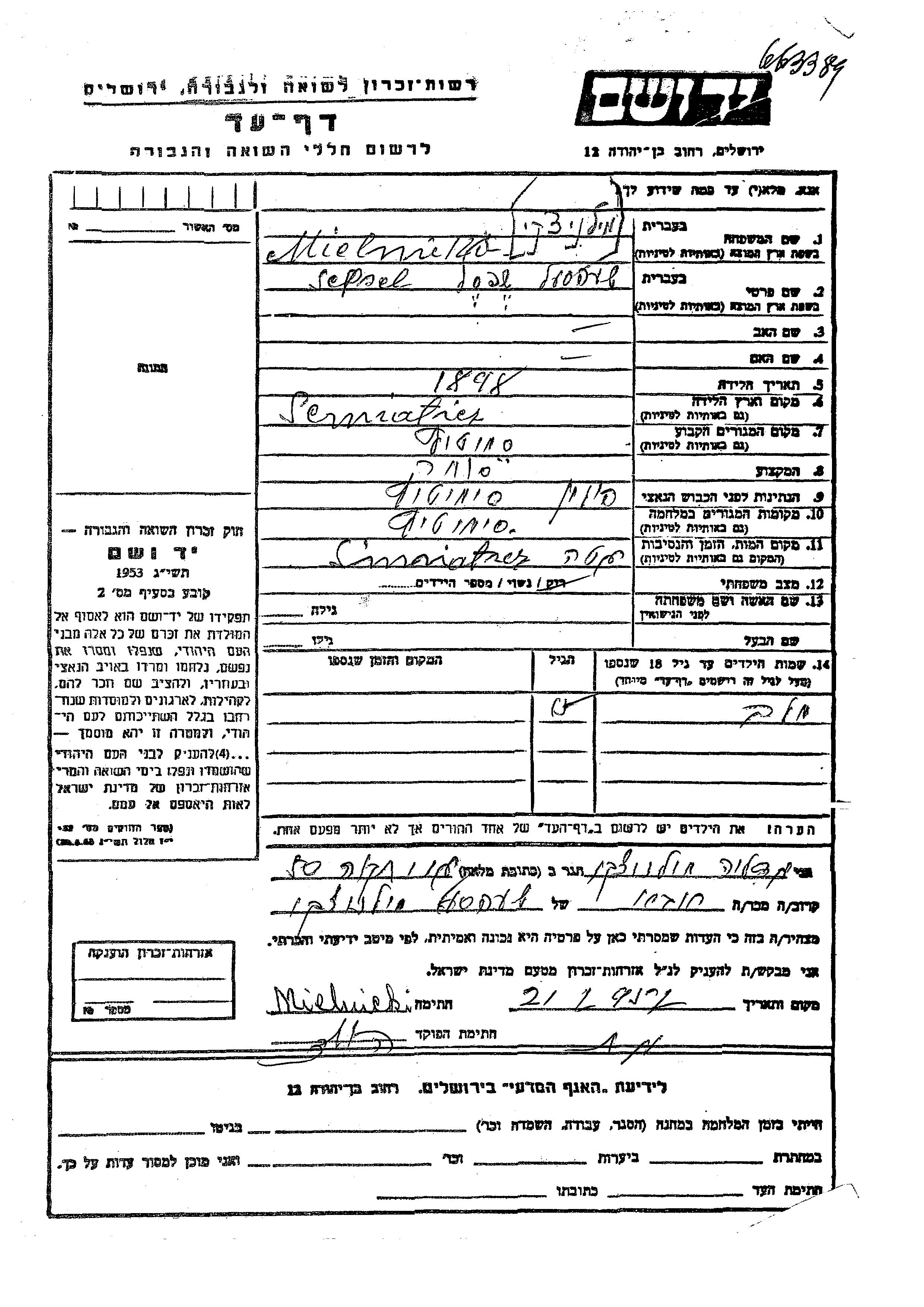 Мельницки Вольв Семятыче, Польша Лист свидетельских показаний