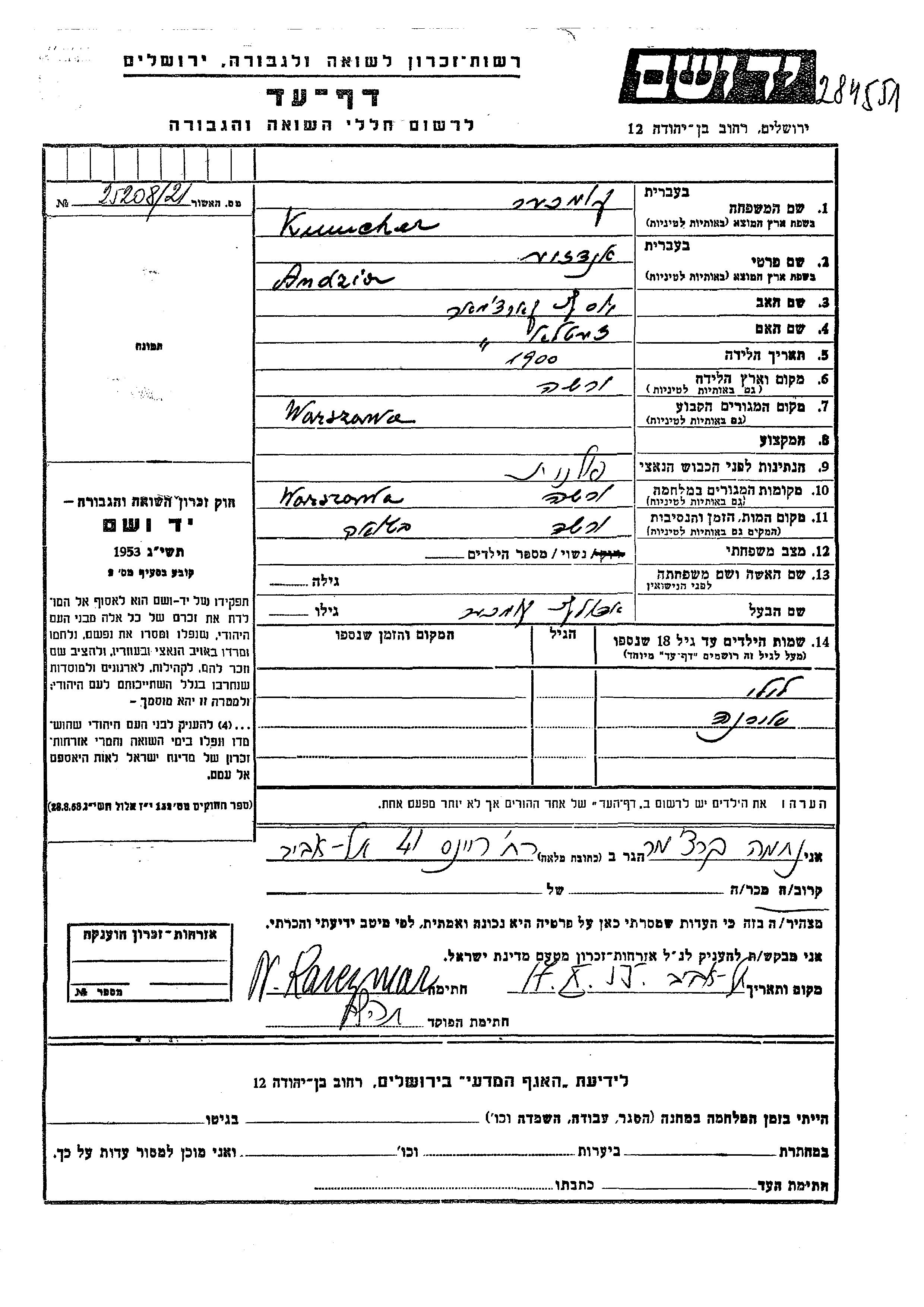 Яд Вашем - Листы свидетельских показаний Мемориального фонда