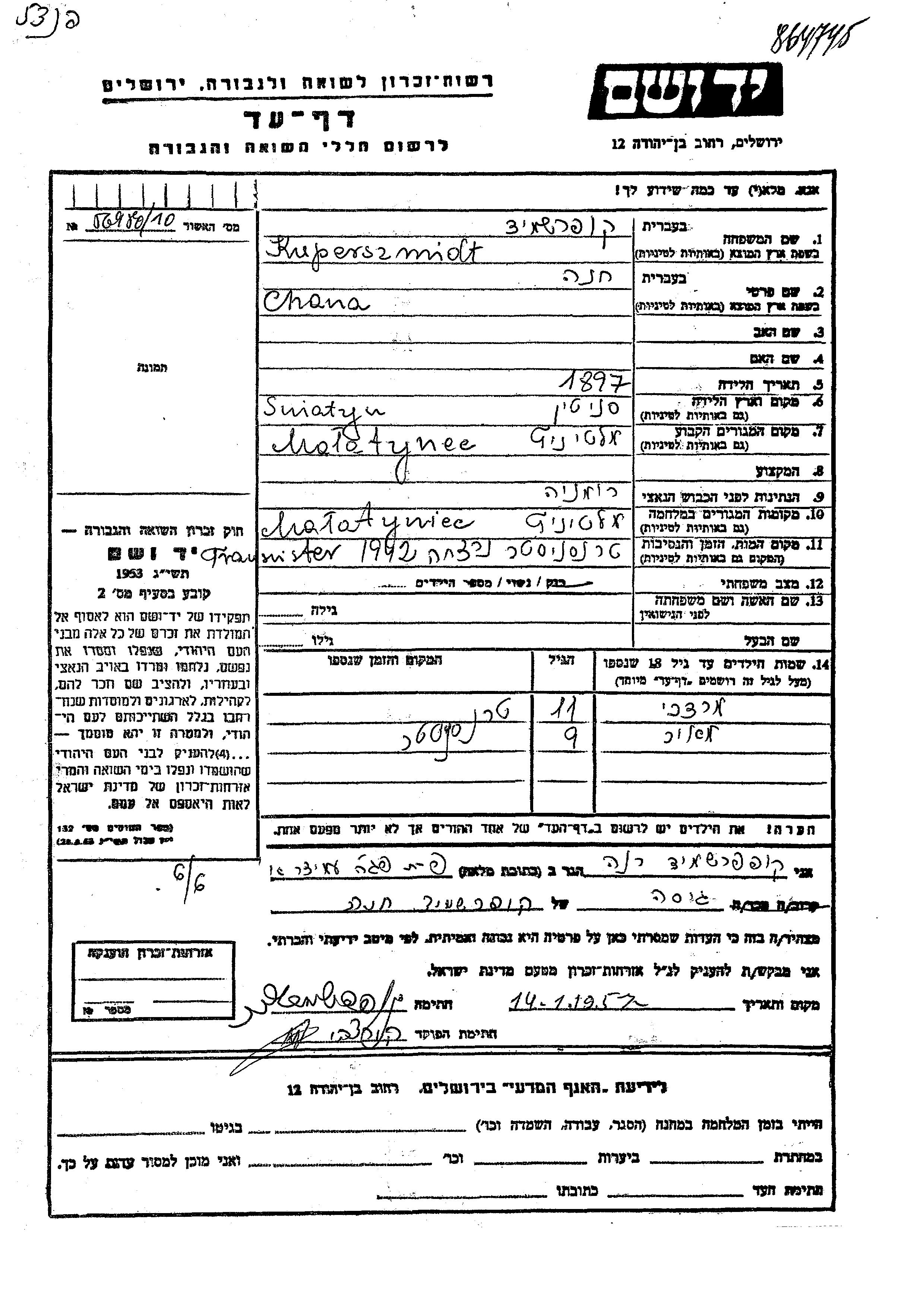 Купершмидт Меир Малатынец, Румыния Лист свидетельских показаний
