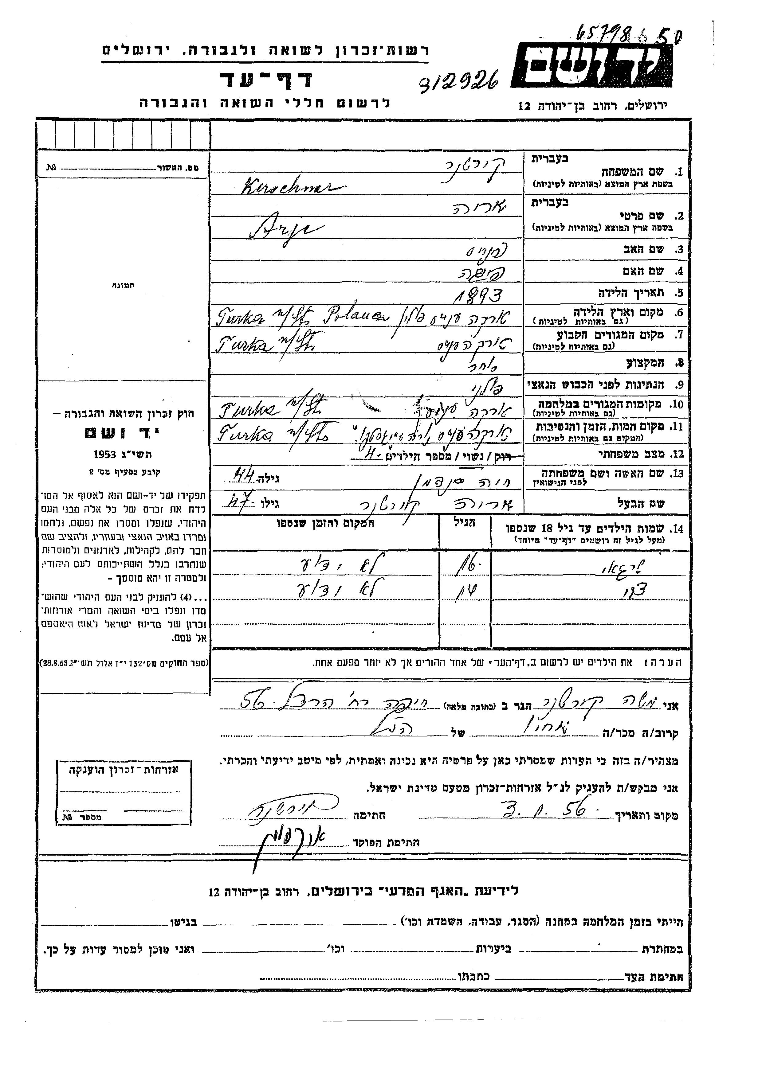 Яд Вашем - Листы свидетельских показаний Мемориального фонда