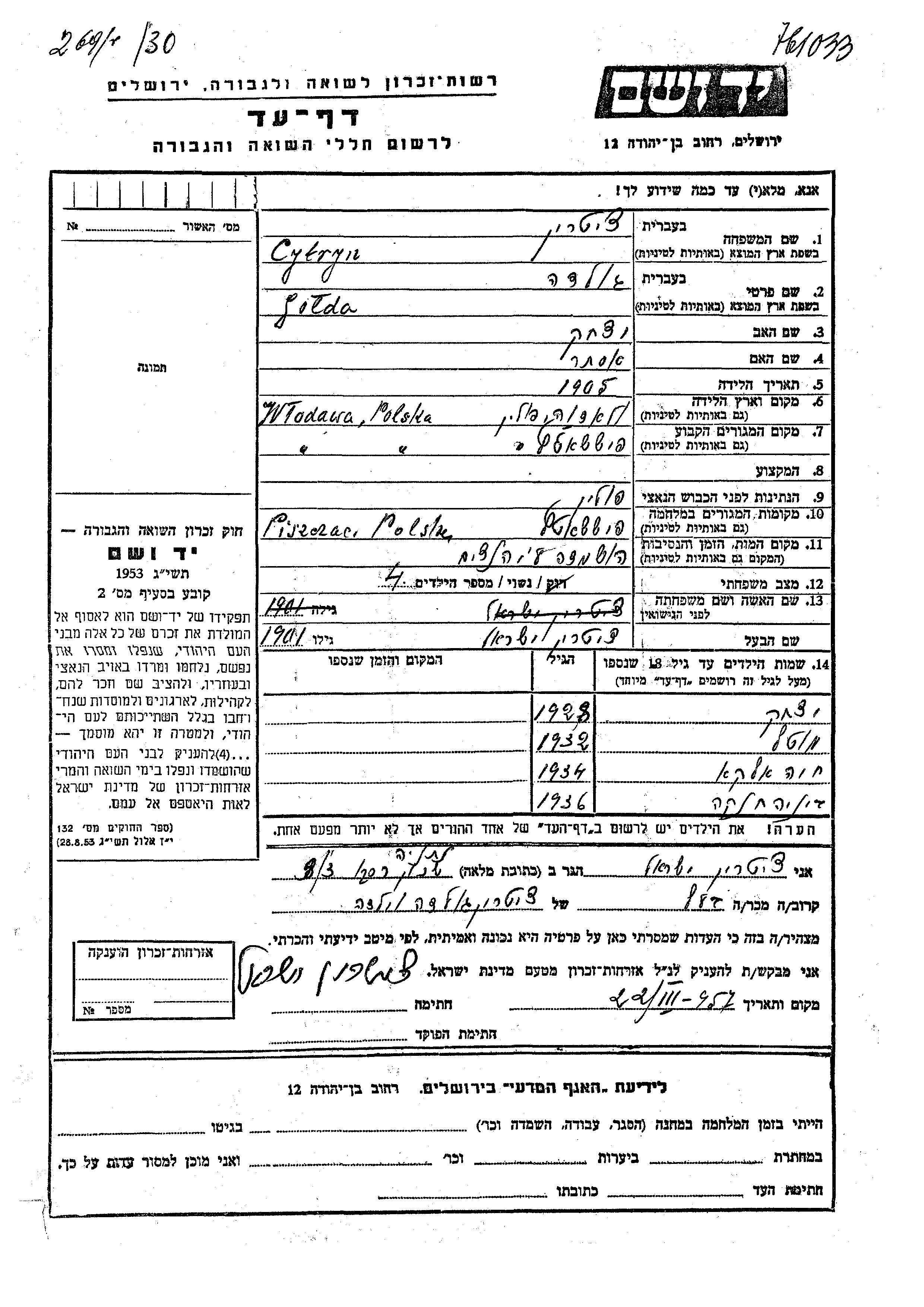 Яд Вашем - Листы свидетельских показаний Мемориального фонда