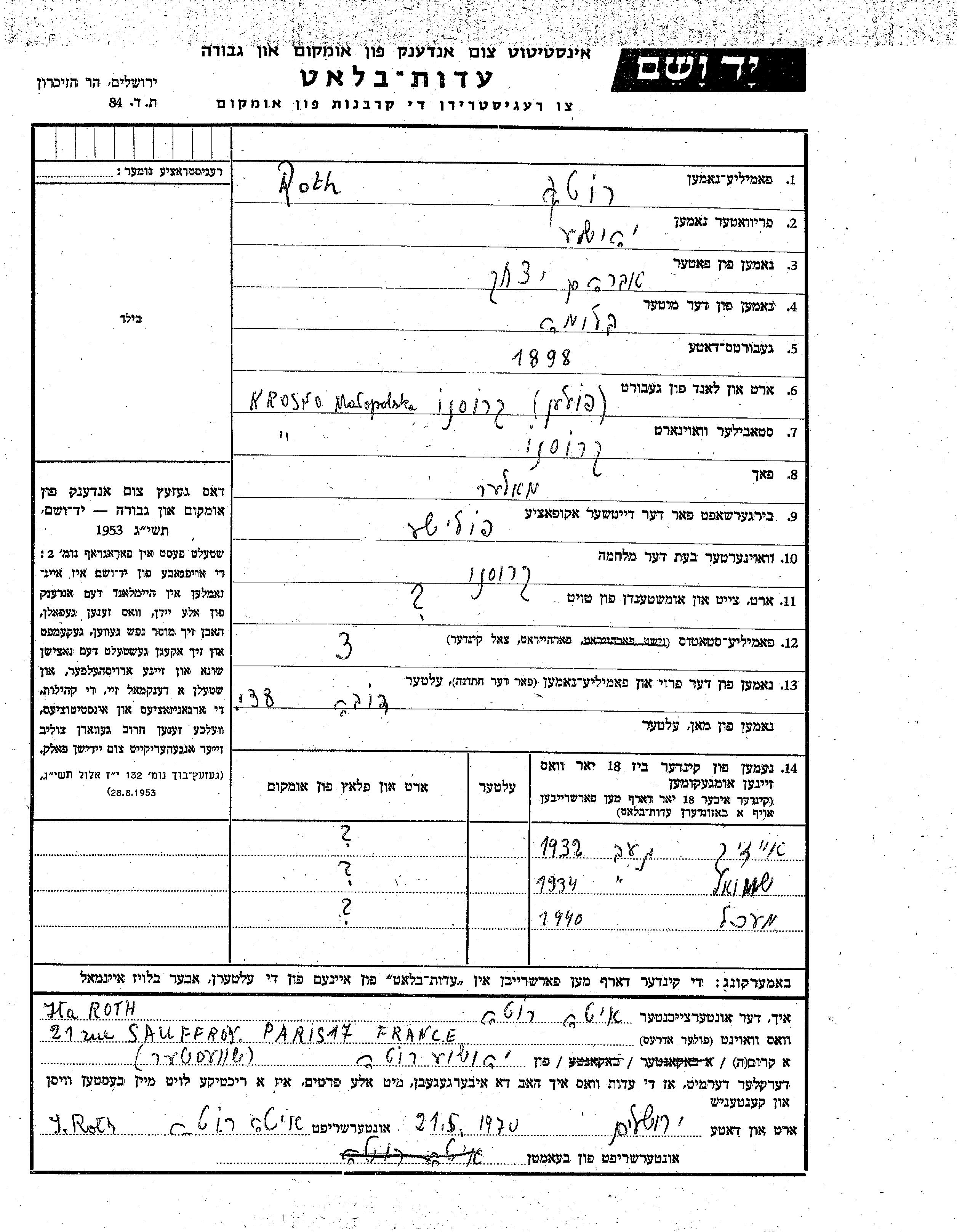 Рот Рут Мехл 1940 Кросно, Лист свидетельских показаний