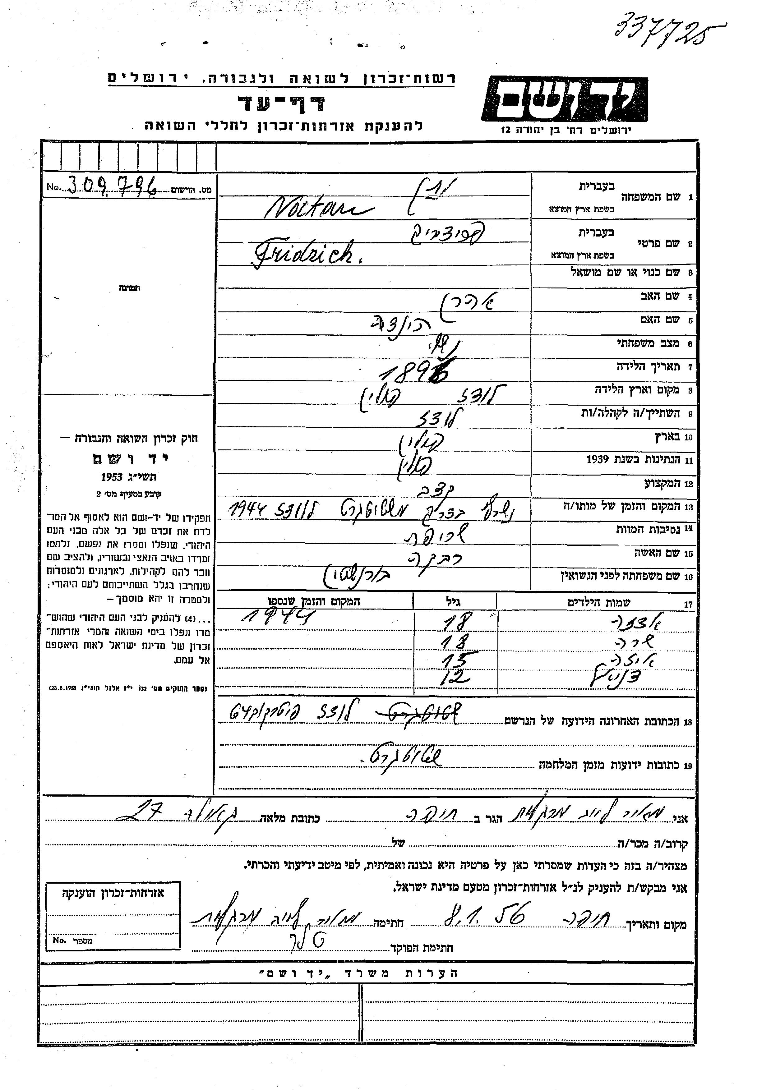 Яд Вашем - Листы свидетельских показаний Мемориального фонда