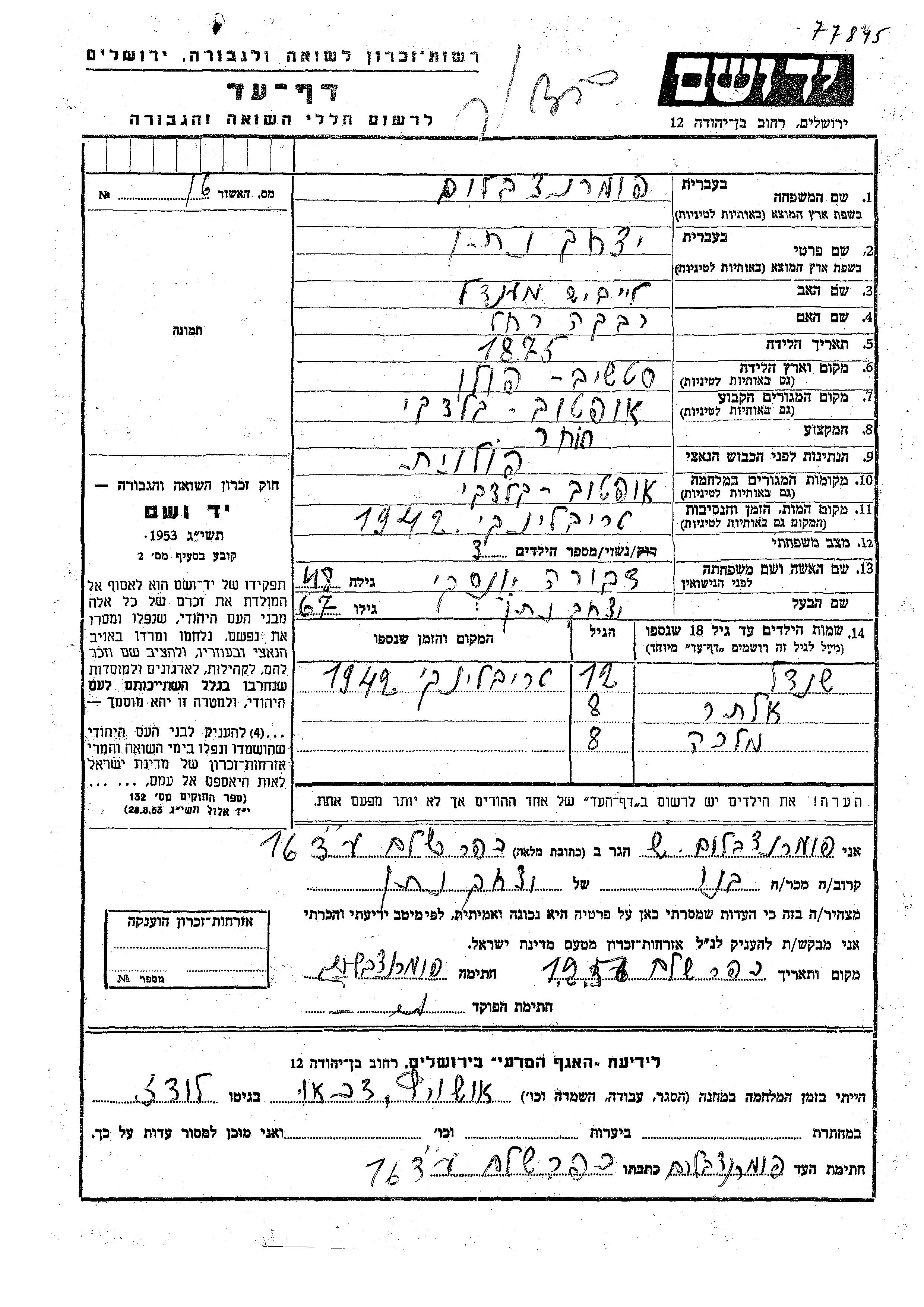 Яд Вашем - Листы свидетельских показаний Мемориального фонда