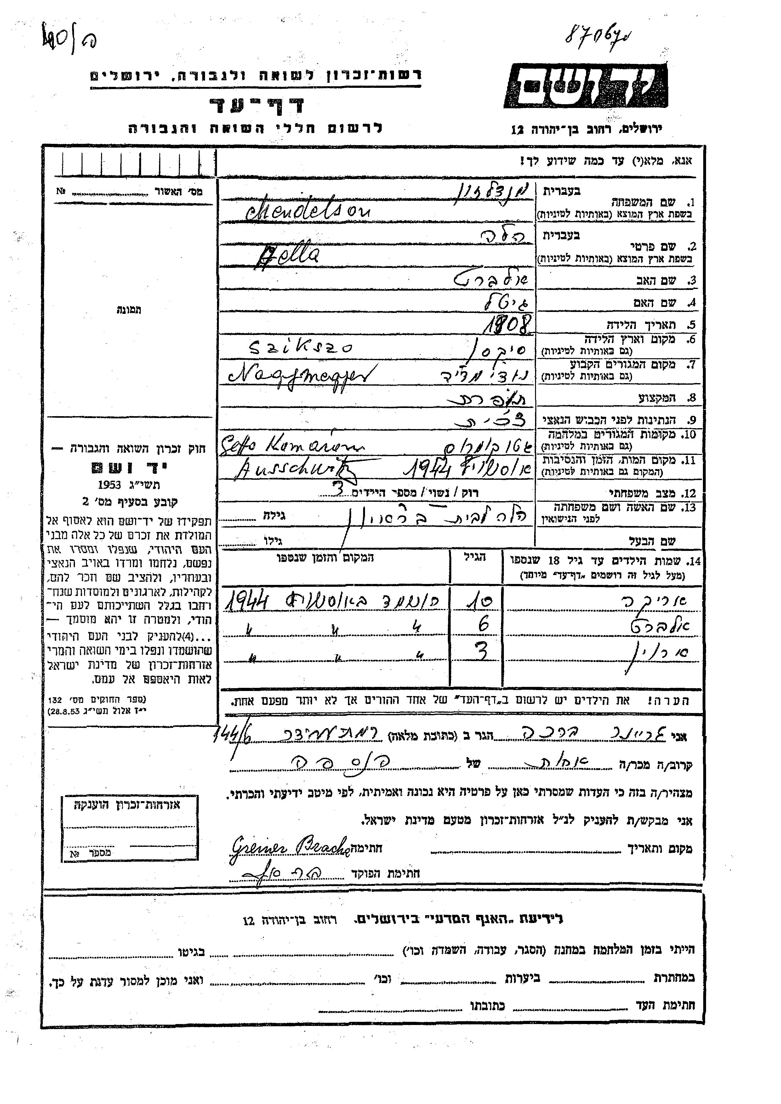 Яд Вашем - Листы свидетельских показаний Мемориального фонда