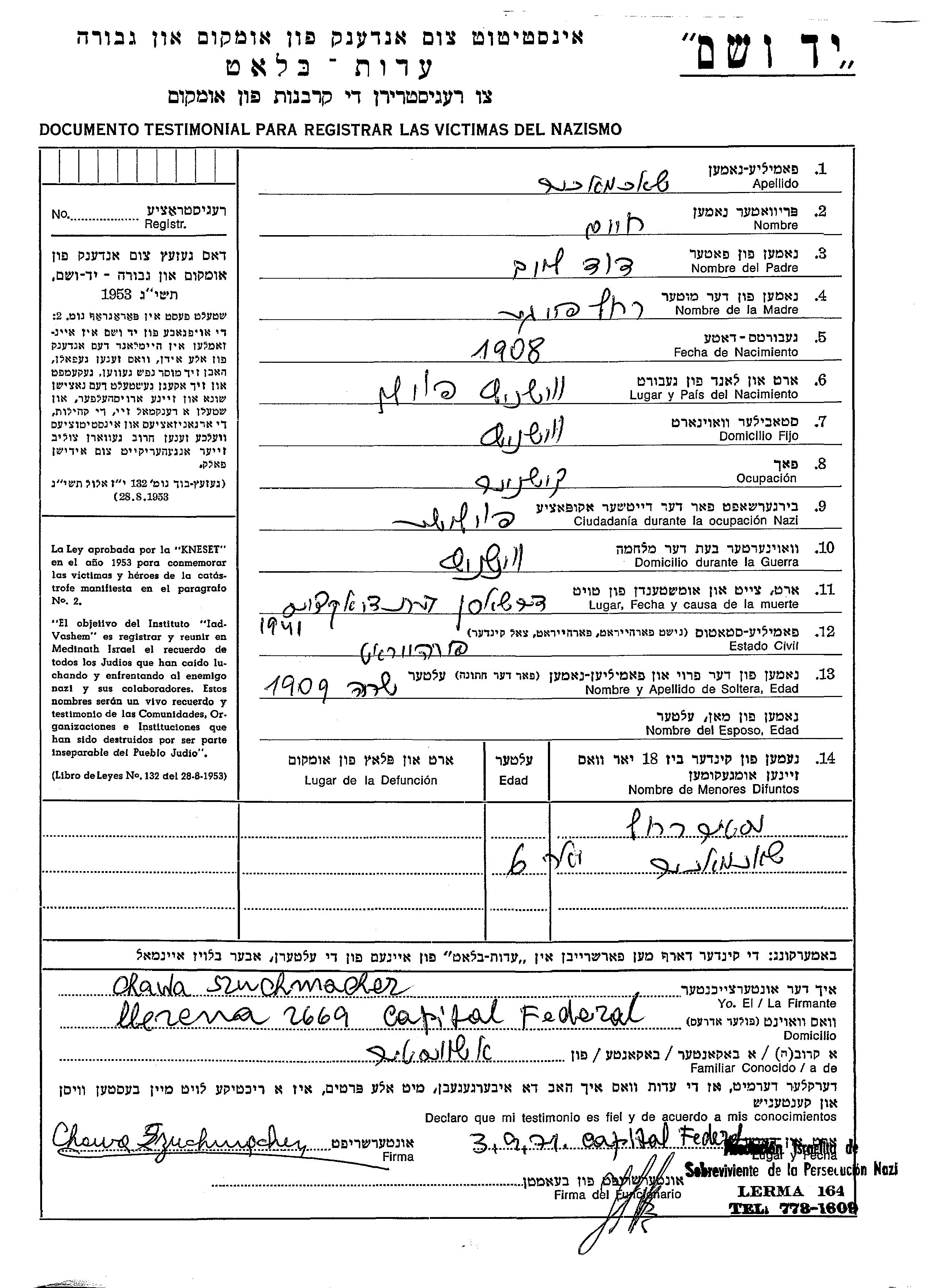 Яд Вашем - Листы свидетельских показаний Мемориального фонда