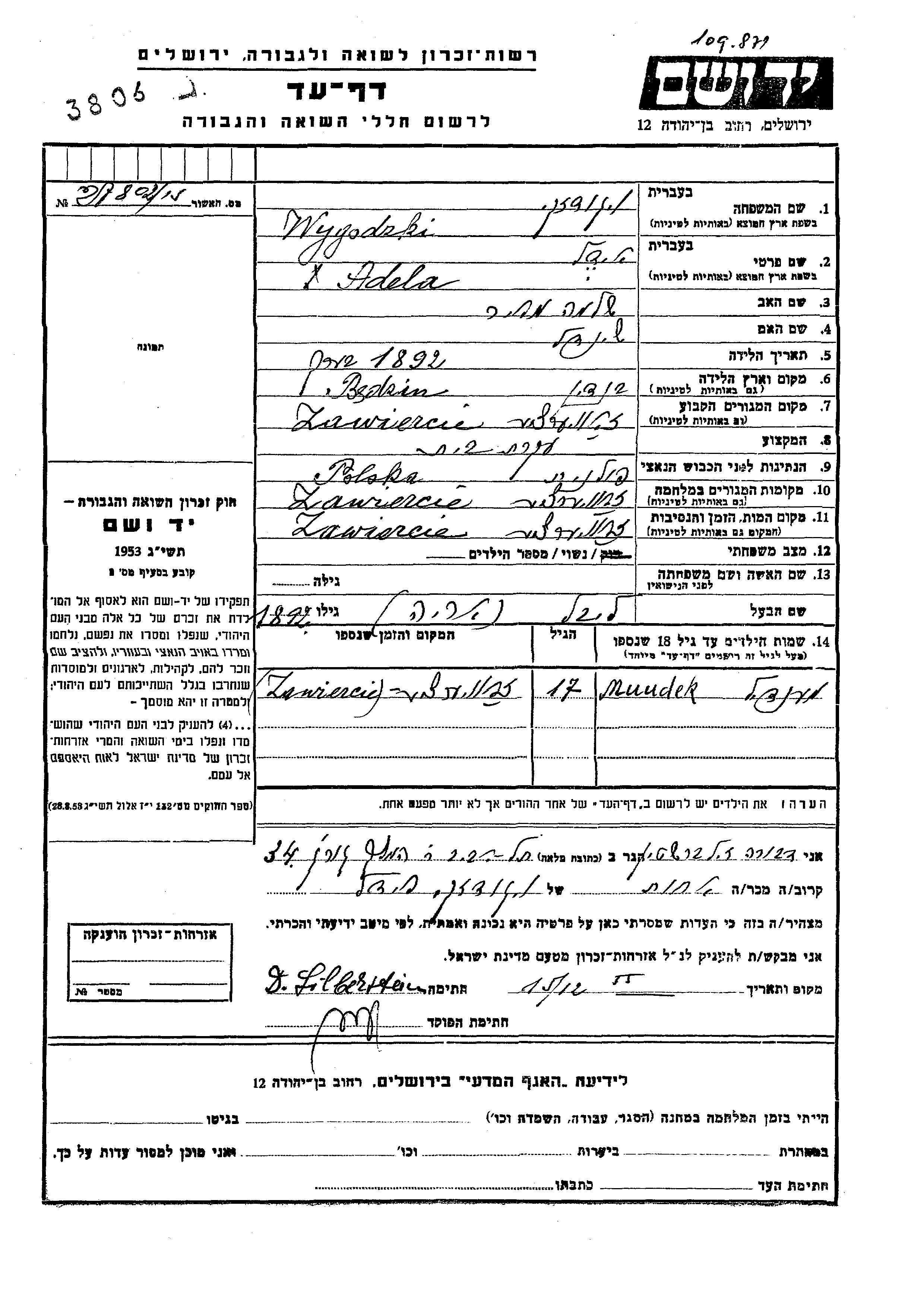 Яд Вашем - Листы свидетельских показаний Мемориального фонда