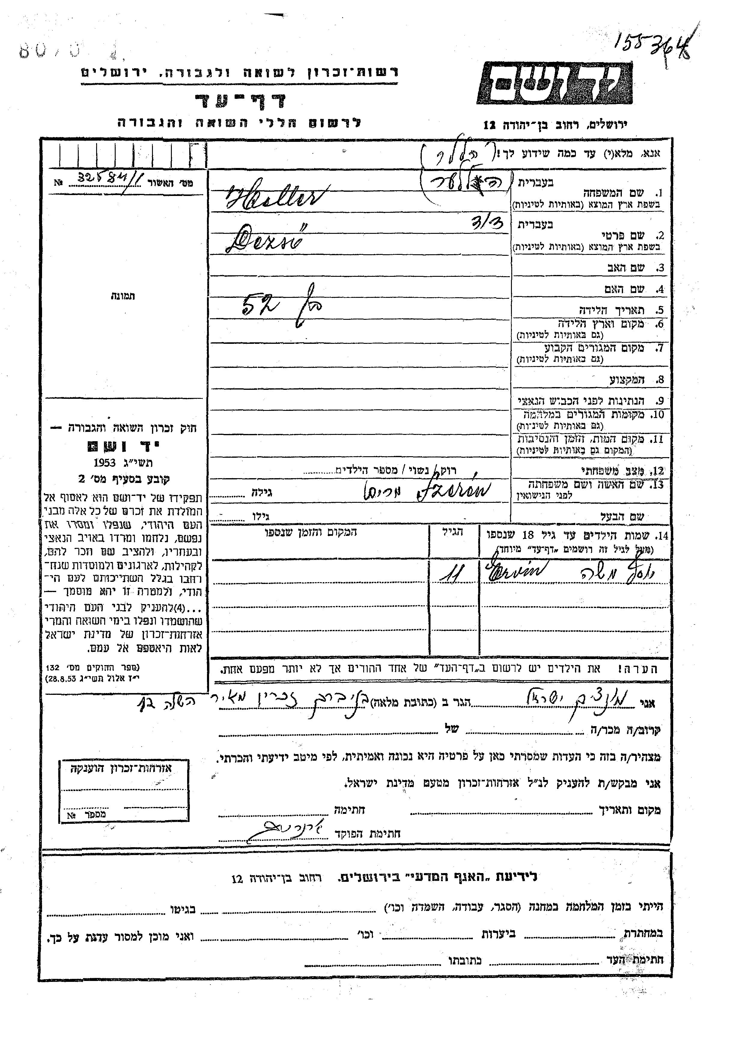 Хеллер Эрвин Иосеф Моше место не указано, Лист свидетельских показаний