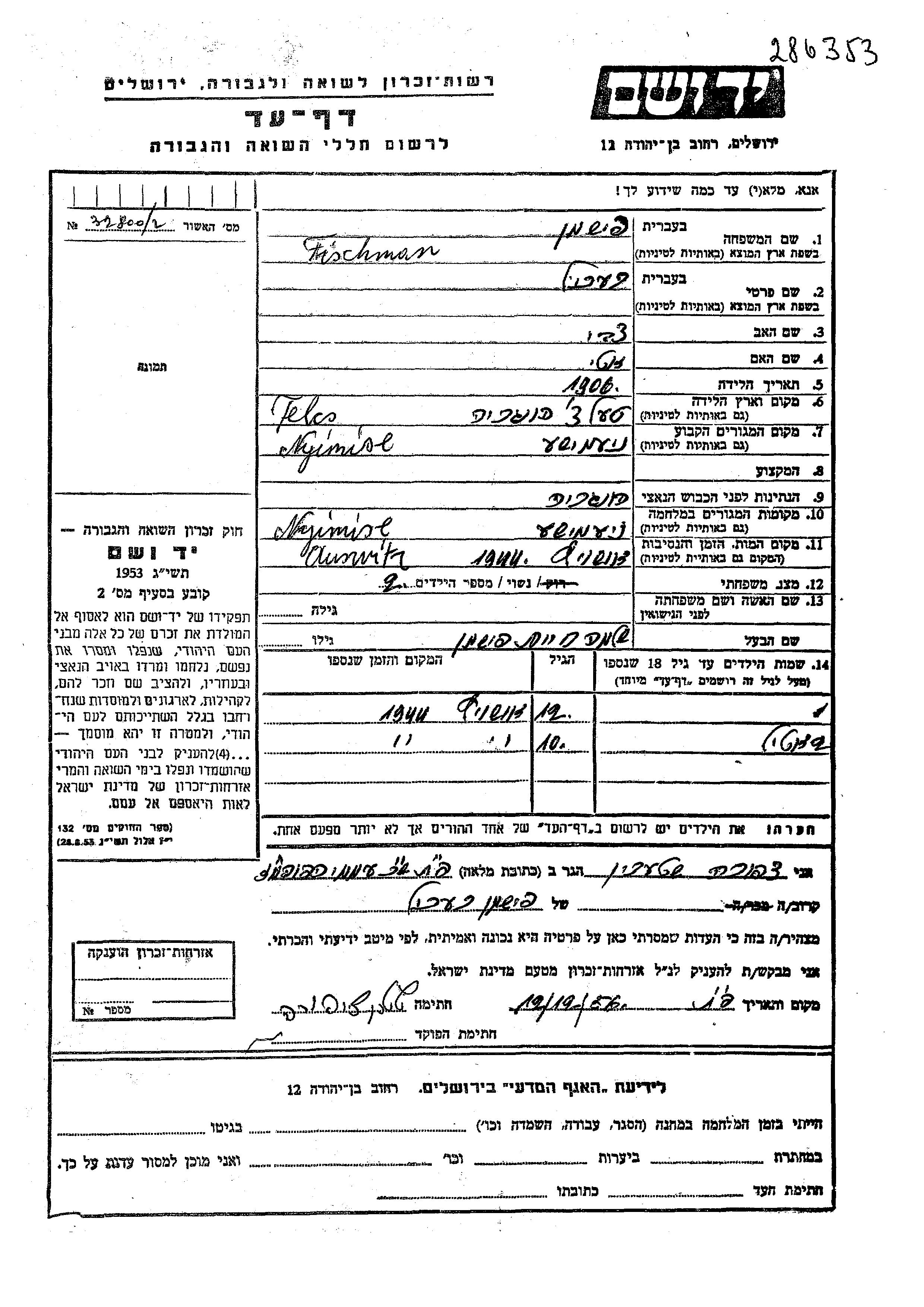 Яд Вашем - Листы свидетельских показаний Мемориального фонда