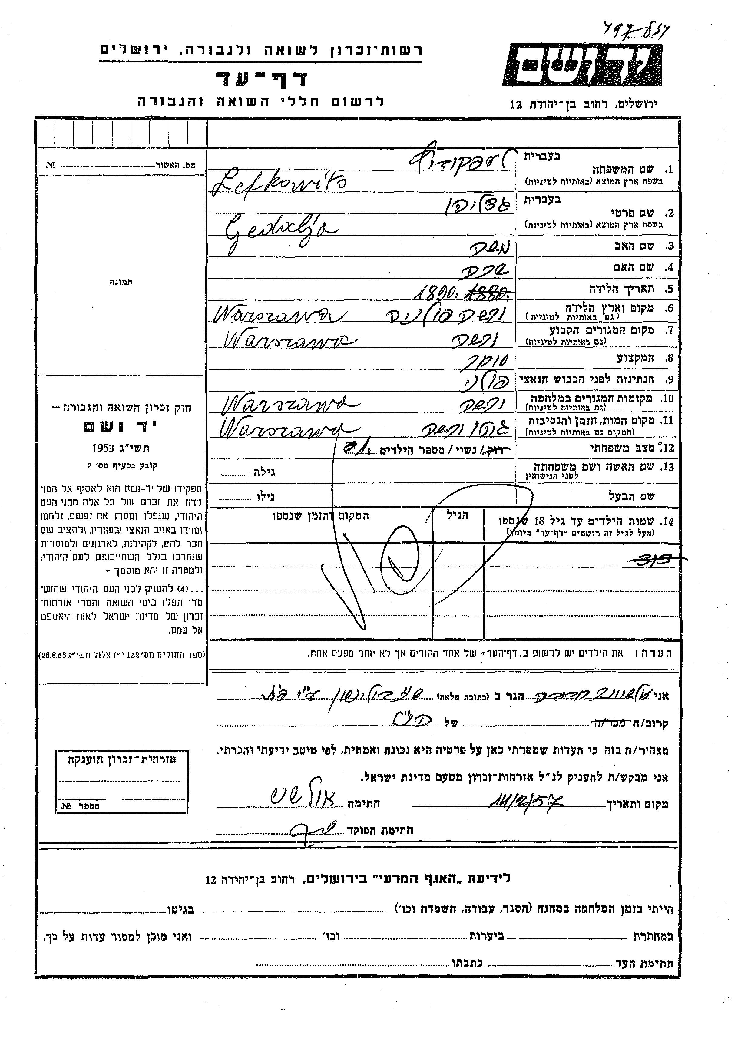 Лефковиц Давид Варшава, Польша Лист свидетельских показаний