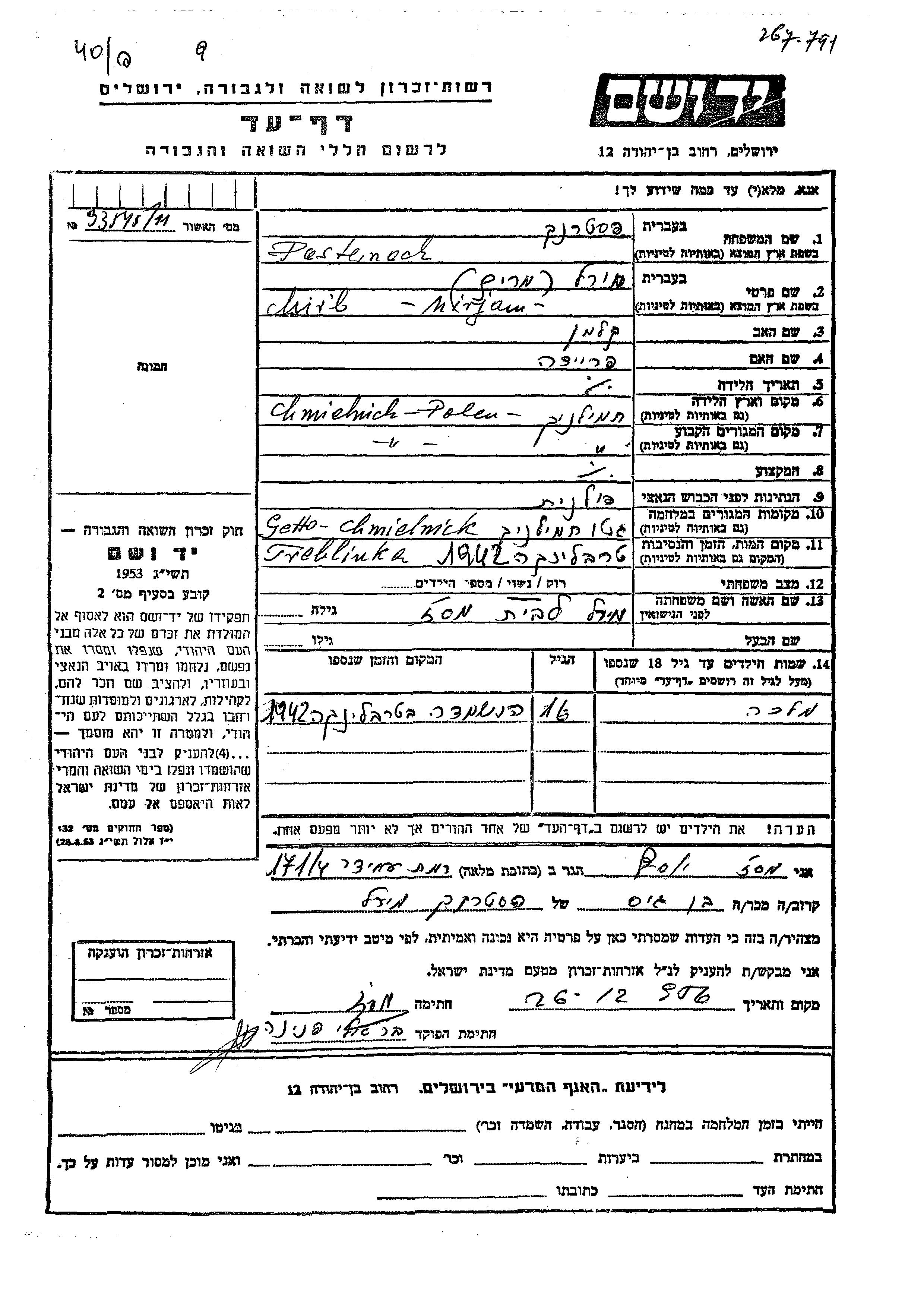 Яд Вашем - Листы свидетельских показаний Мемориального фонда