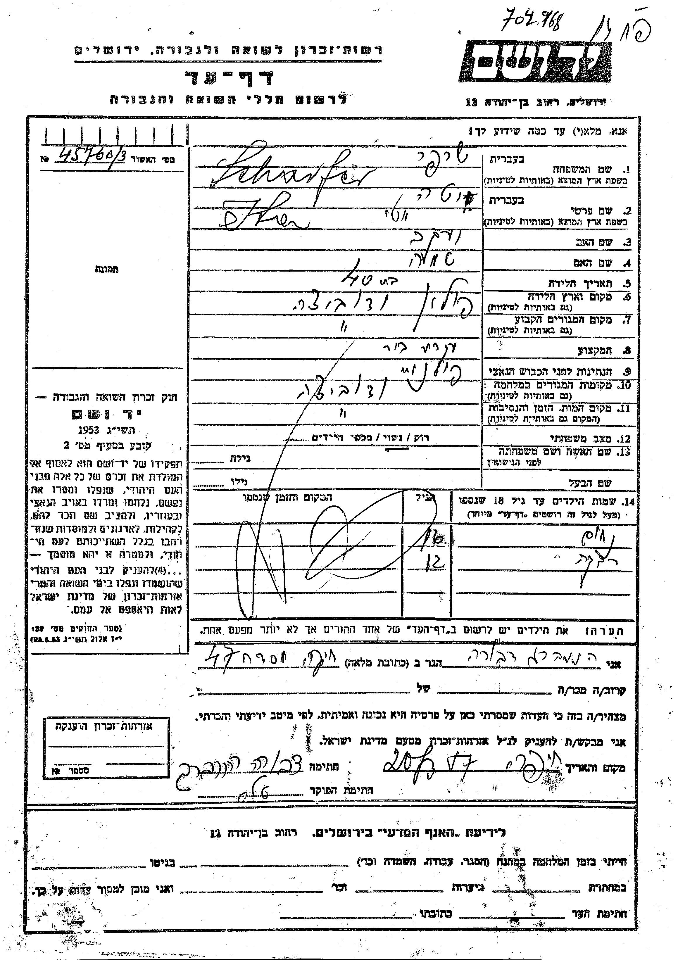 Яд Вашем - Листы свидетельских показаний Мемориального фонда
