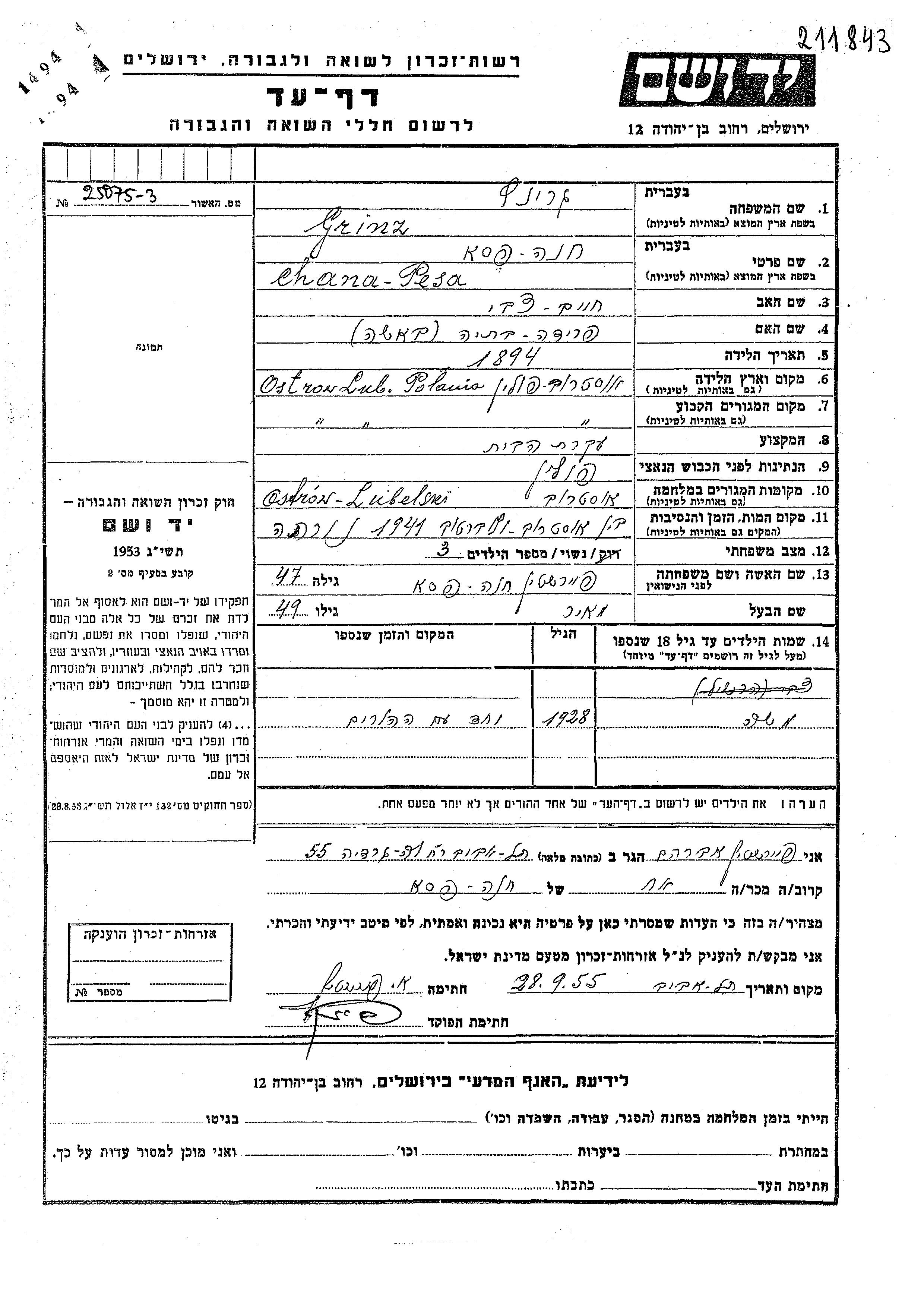 Яд Вашем - Листы свидетельских показаний Мемориального фонда