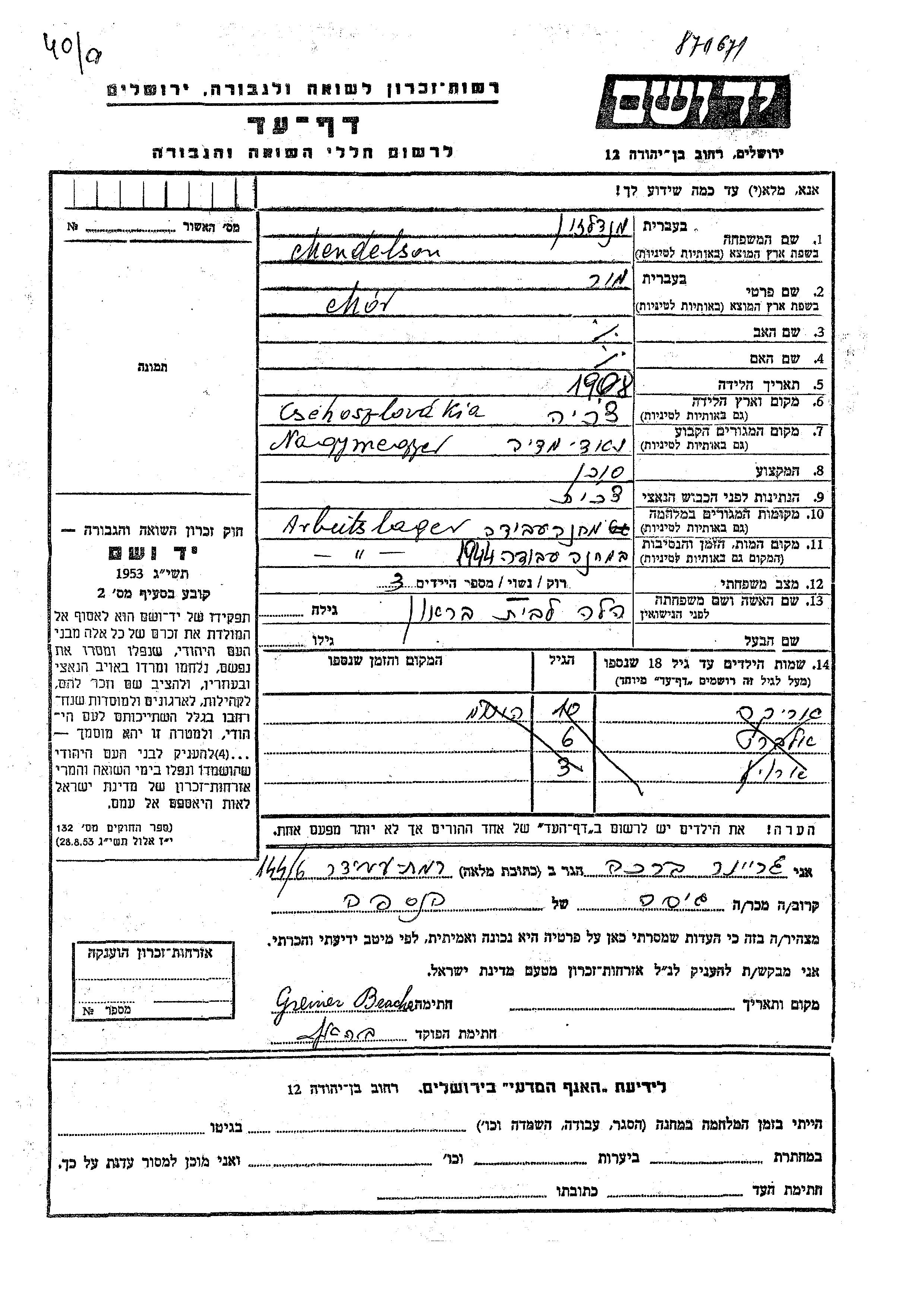 Яд Вашем - Листы свидетельских показаний Мемориального фонда