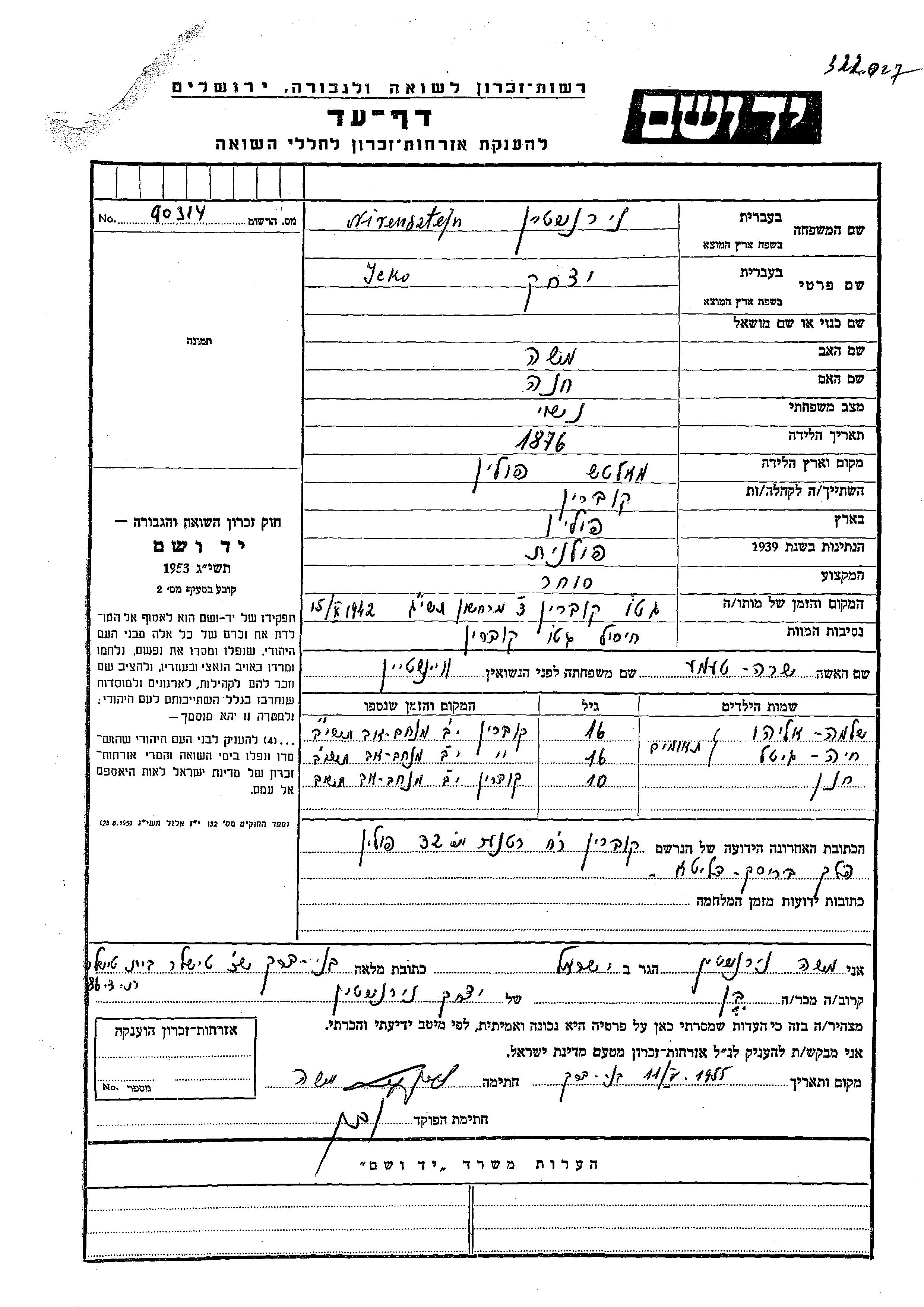 Ниренштейн Хая Гитель Кобрынь, Польша Лист свидетельских показаний
