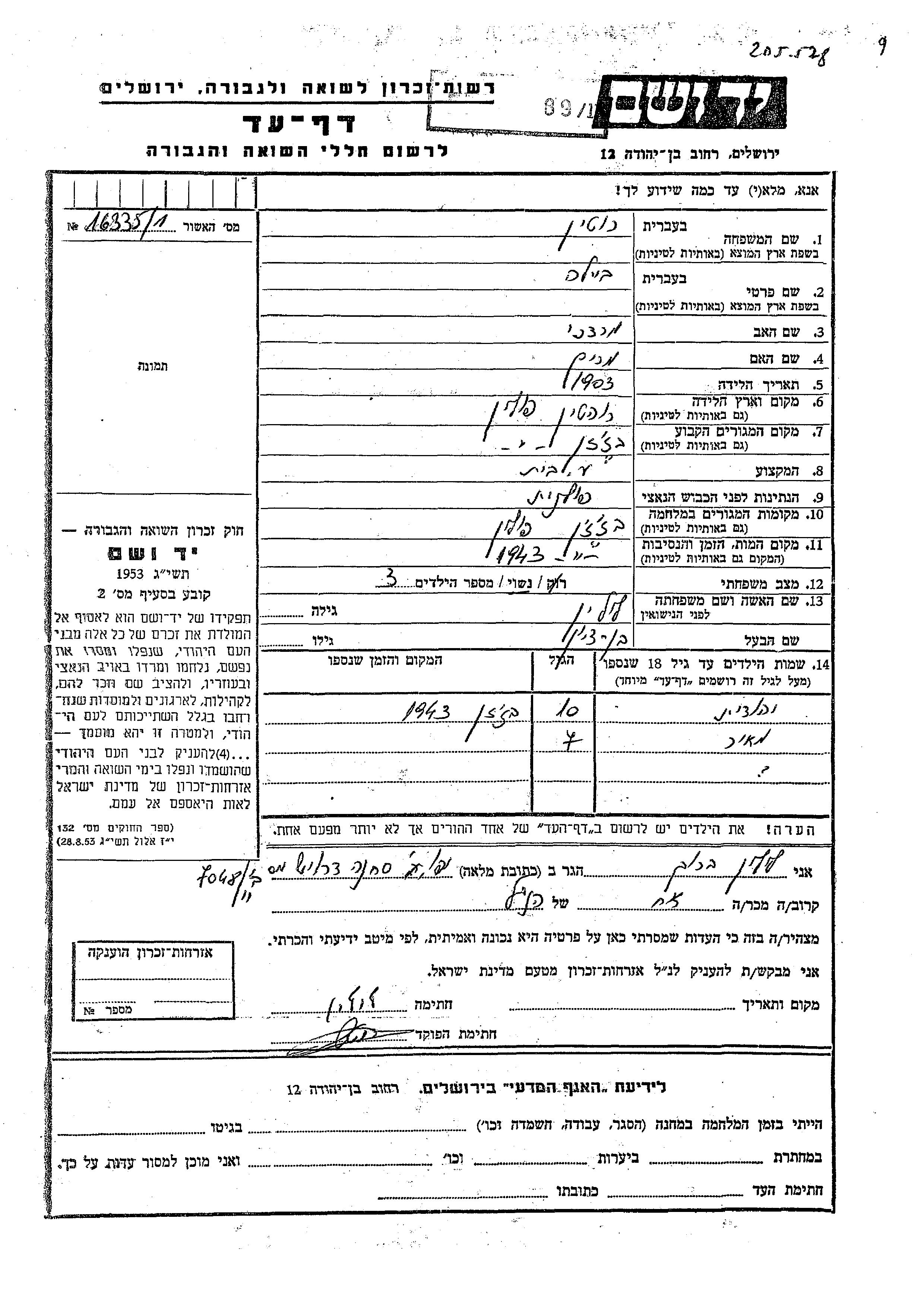 Яд Вашем - Листы свидетельских показаний Мемориального фонда