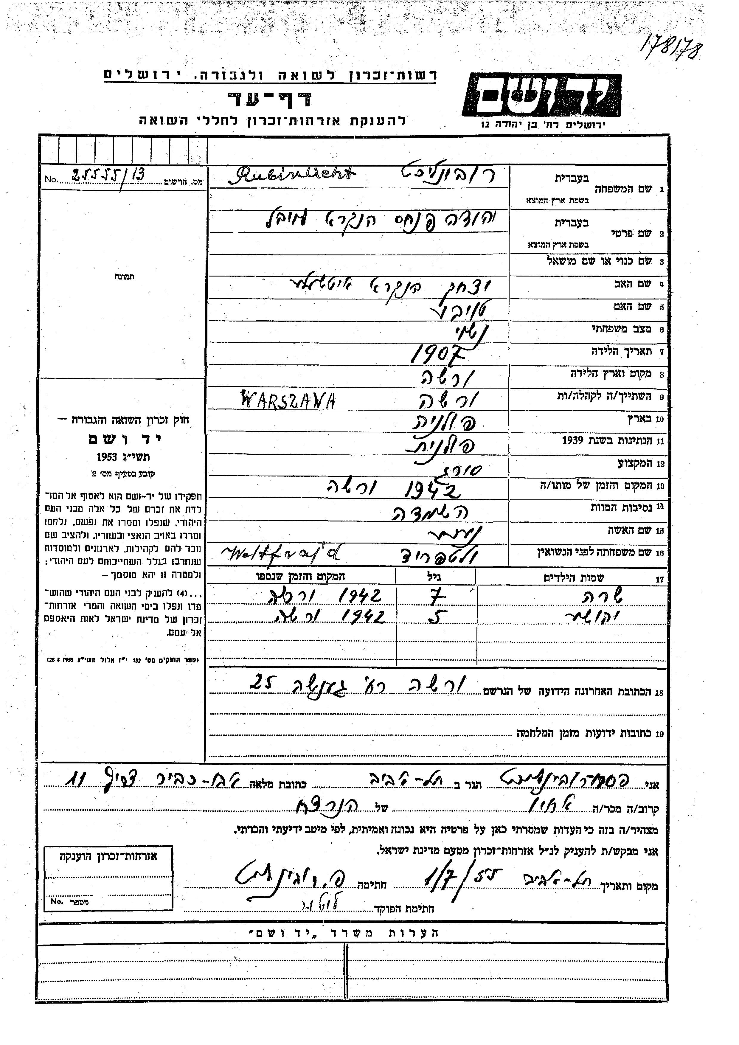 Рубинлихт Иегошуа Варшава, Польша Лист свидетельских показаний