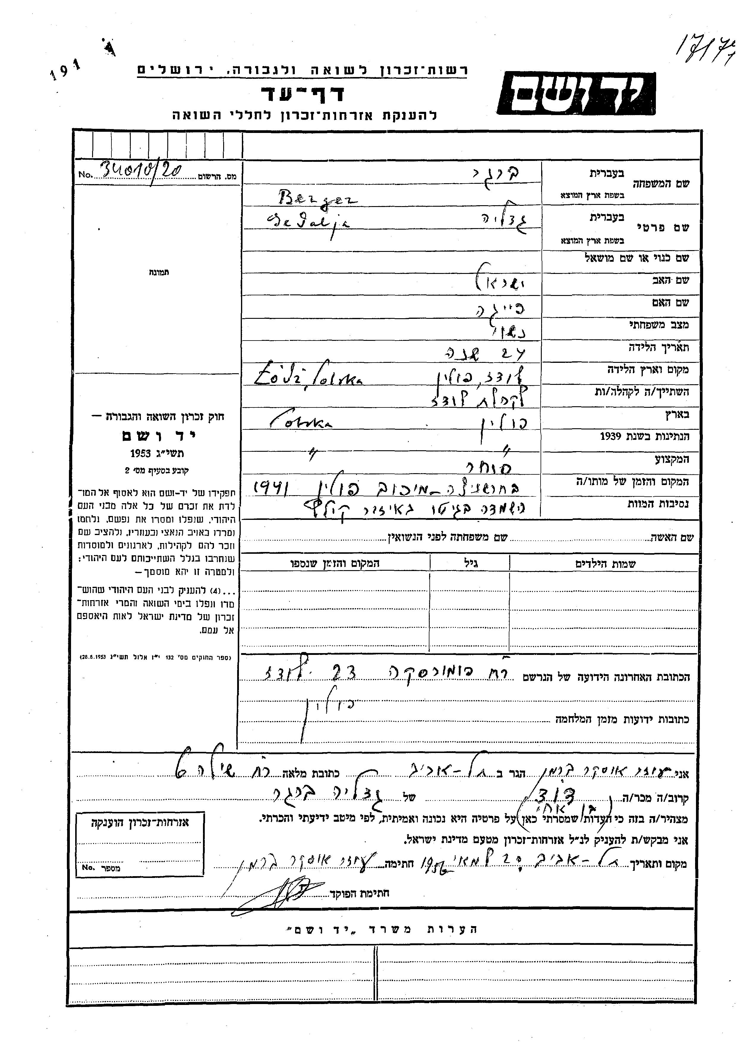 Бергер Гедале Лодзь, Польша Лист свидетельских показаний