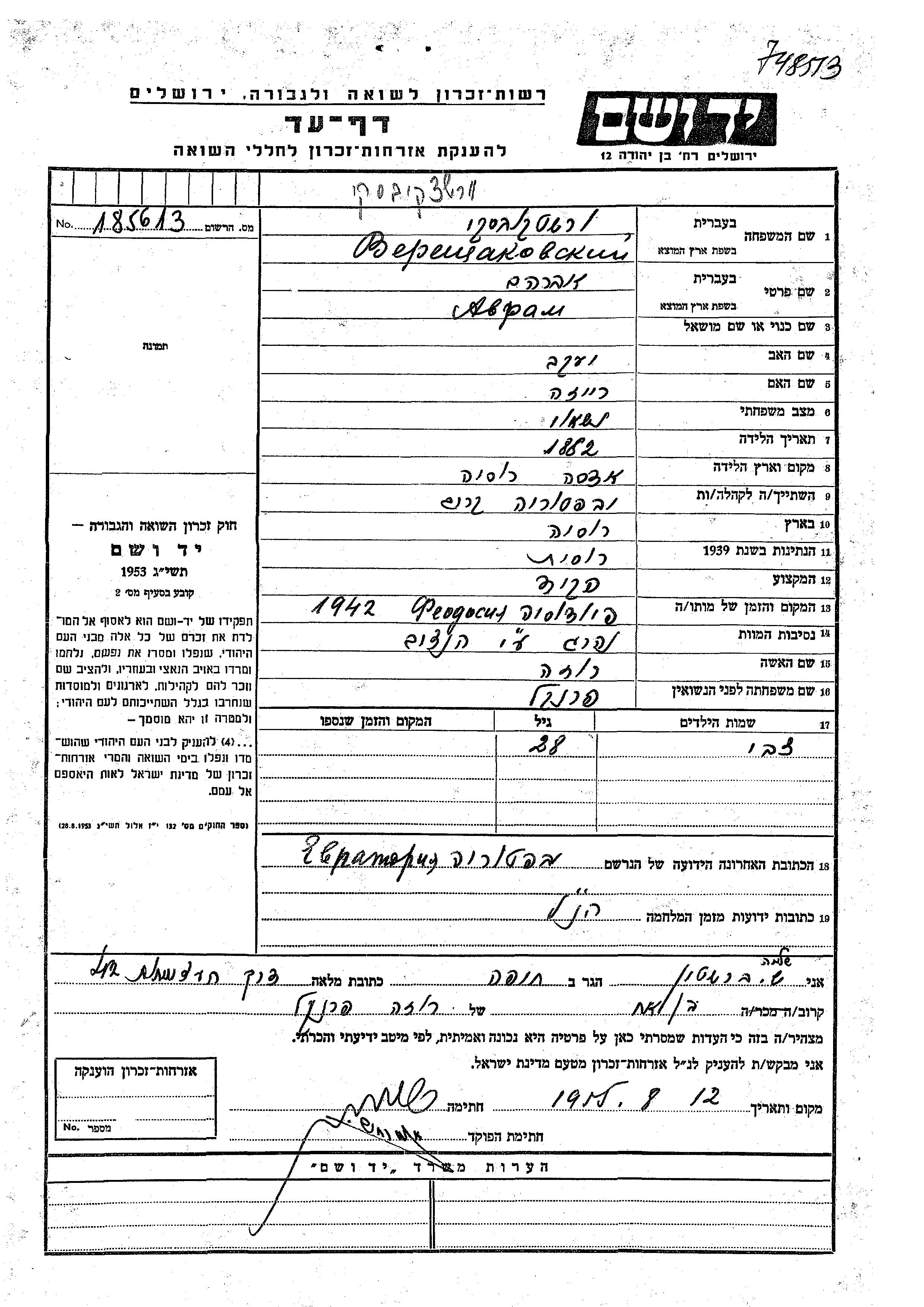 Яд Вашем - Листы свидетельских показаний Мемориального фонда