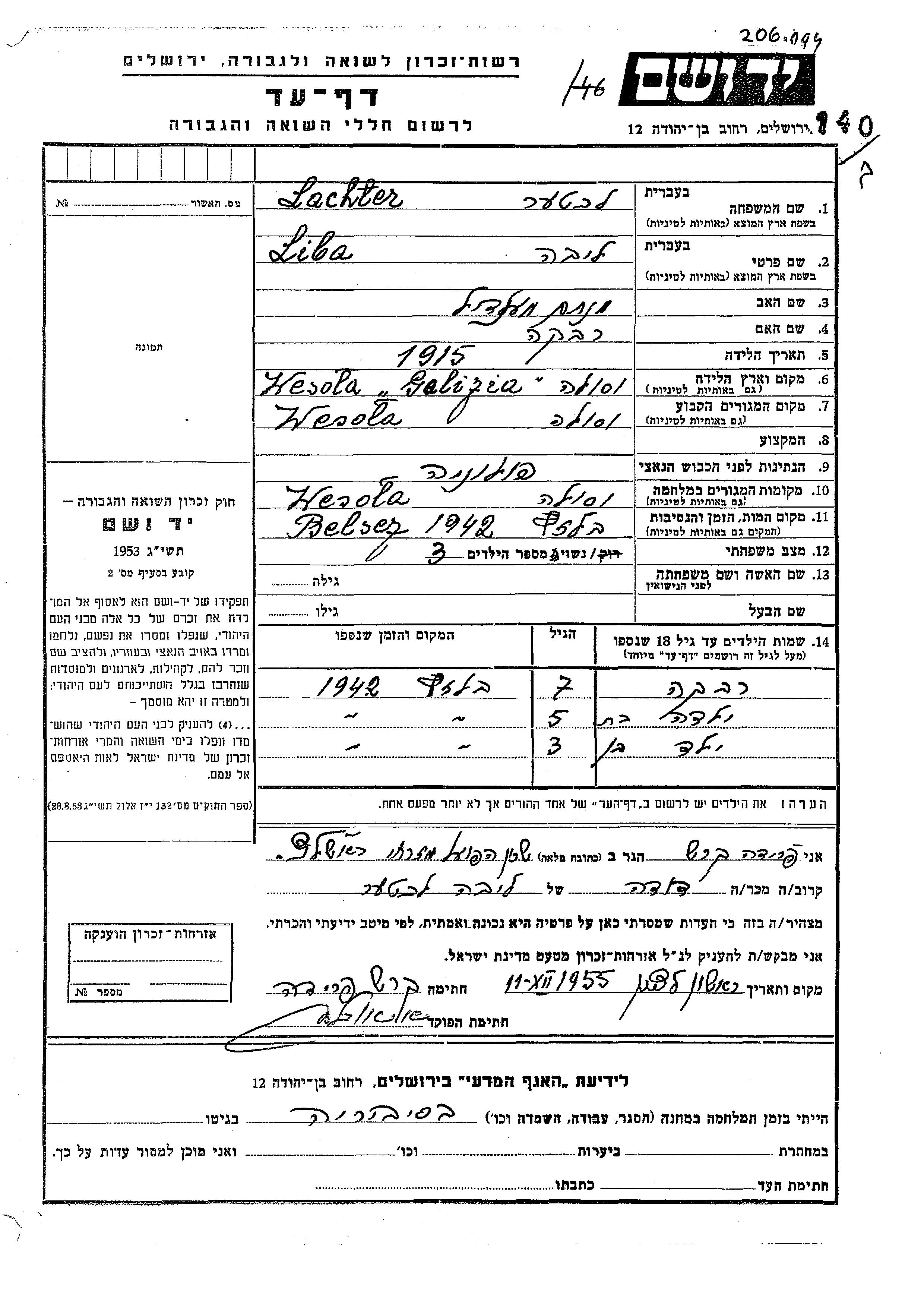 Яд Вашем - Листы свидетельских показаний Мемориального фонда