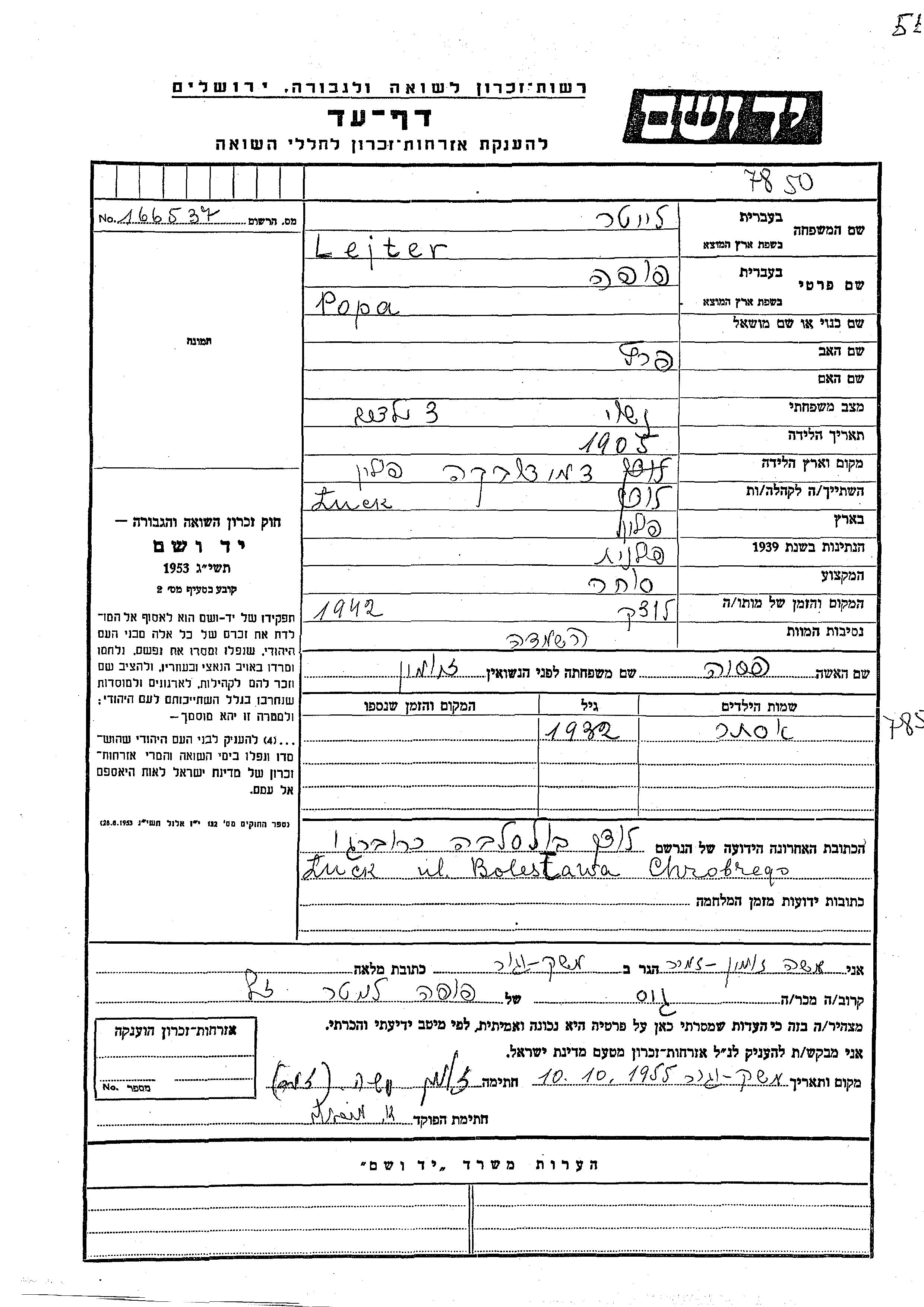 Яд Вашем - Листы свидетельских показаний Мемориального фонда