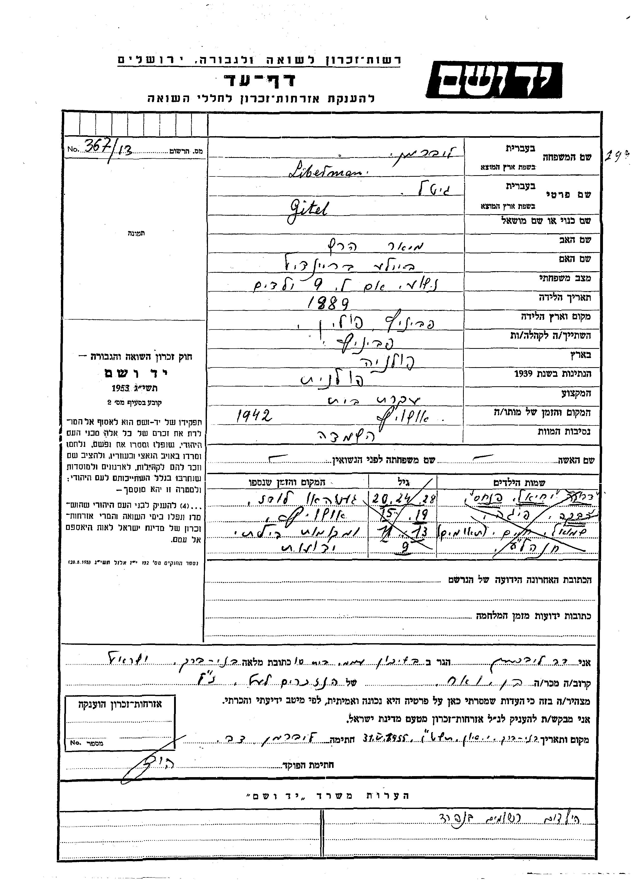 Поиск подателя Листа свидетельских показаний. Поиск по любому имени, включая уменьшительное или прозвище