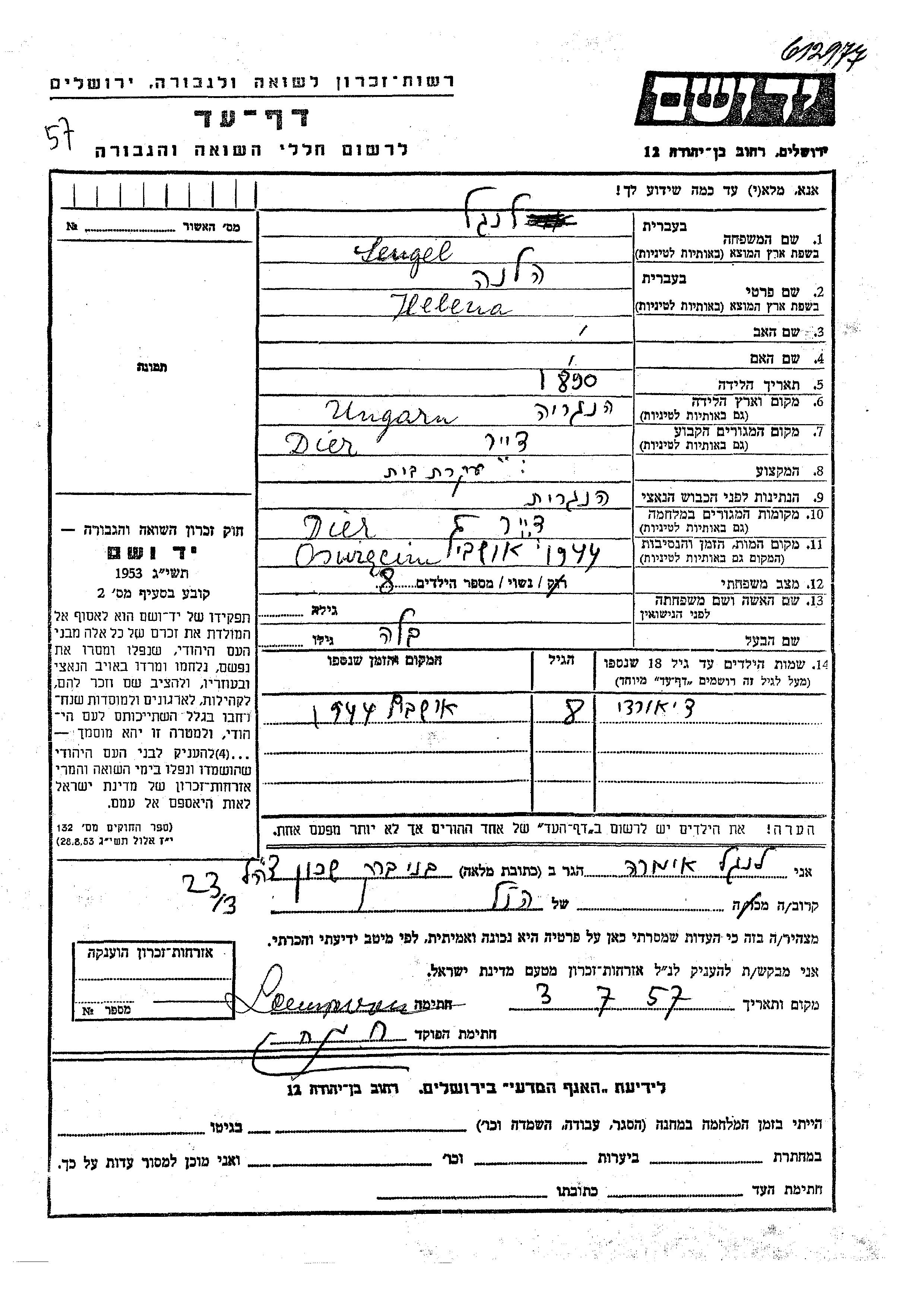 Доирди Ленгель Бела Хелена. Ребенок. Место жительства до войны: Дьёр, Венгрия. Место во время войны: Дьёр, Венгрия.