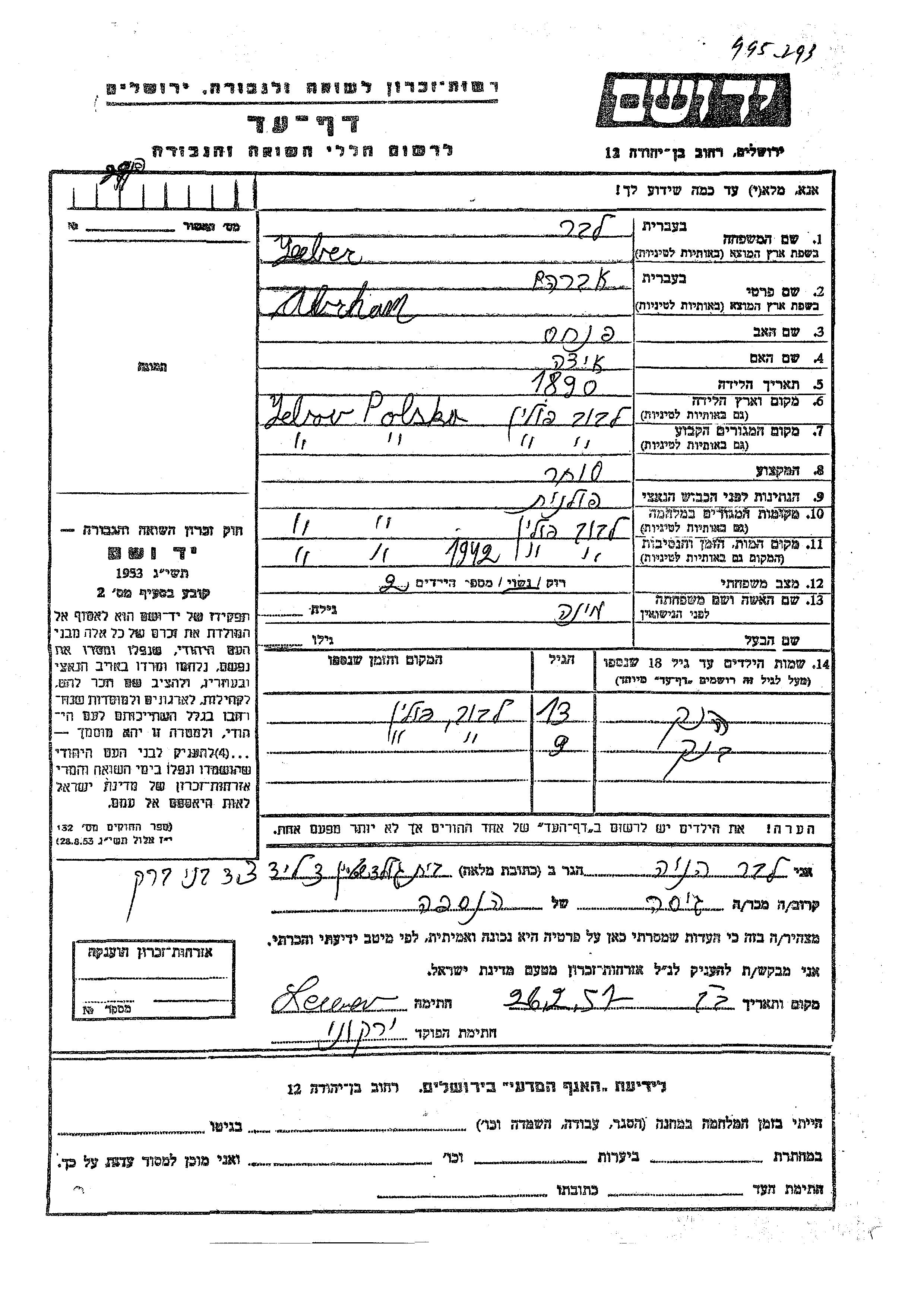 Яд Вашем - Листы свидетельских показаний Мемориального фонда