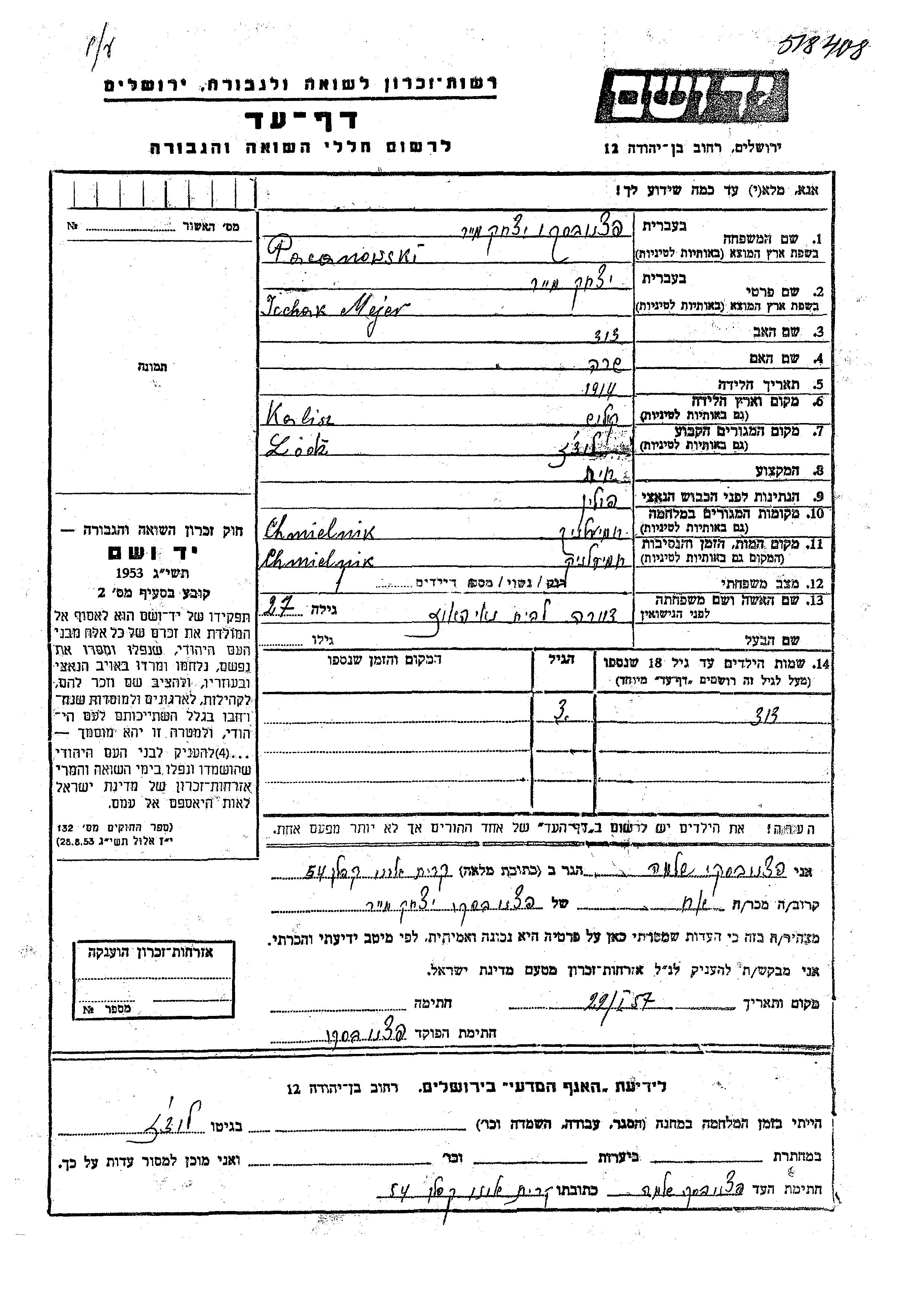 Яд Вашем - Листы свидетельских показаний Мемориального фонда