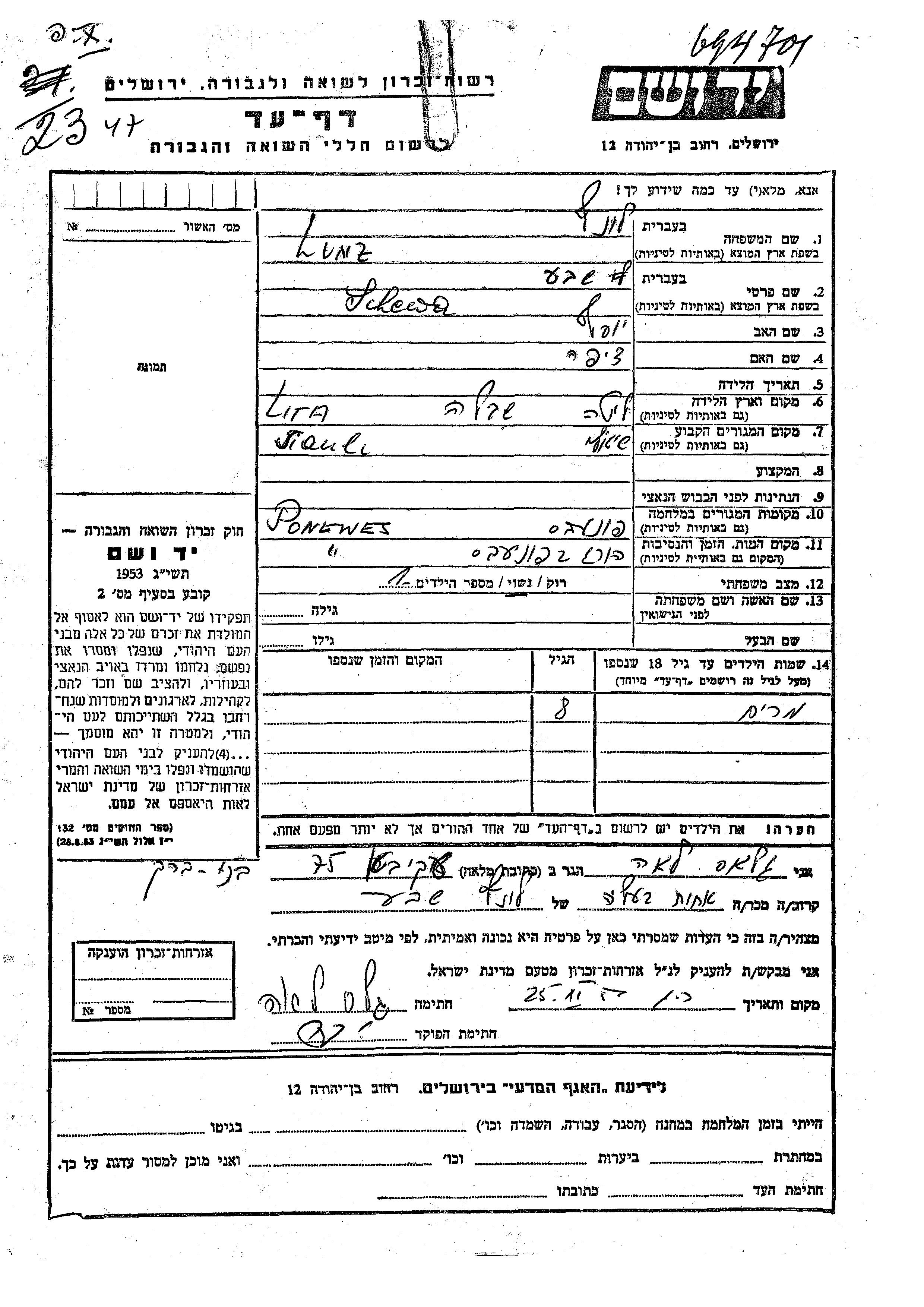 Яд Вашем - Листы свидетельских показаний Мемориального фонда