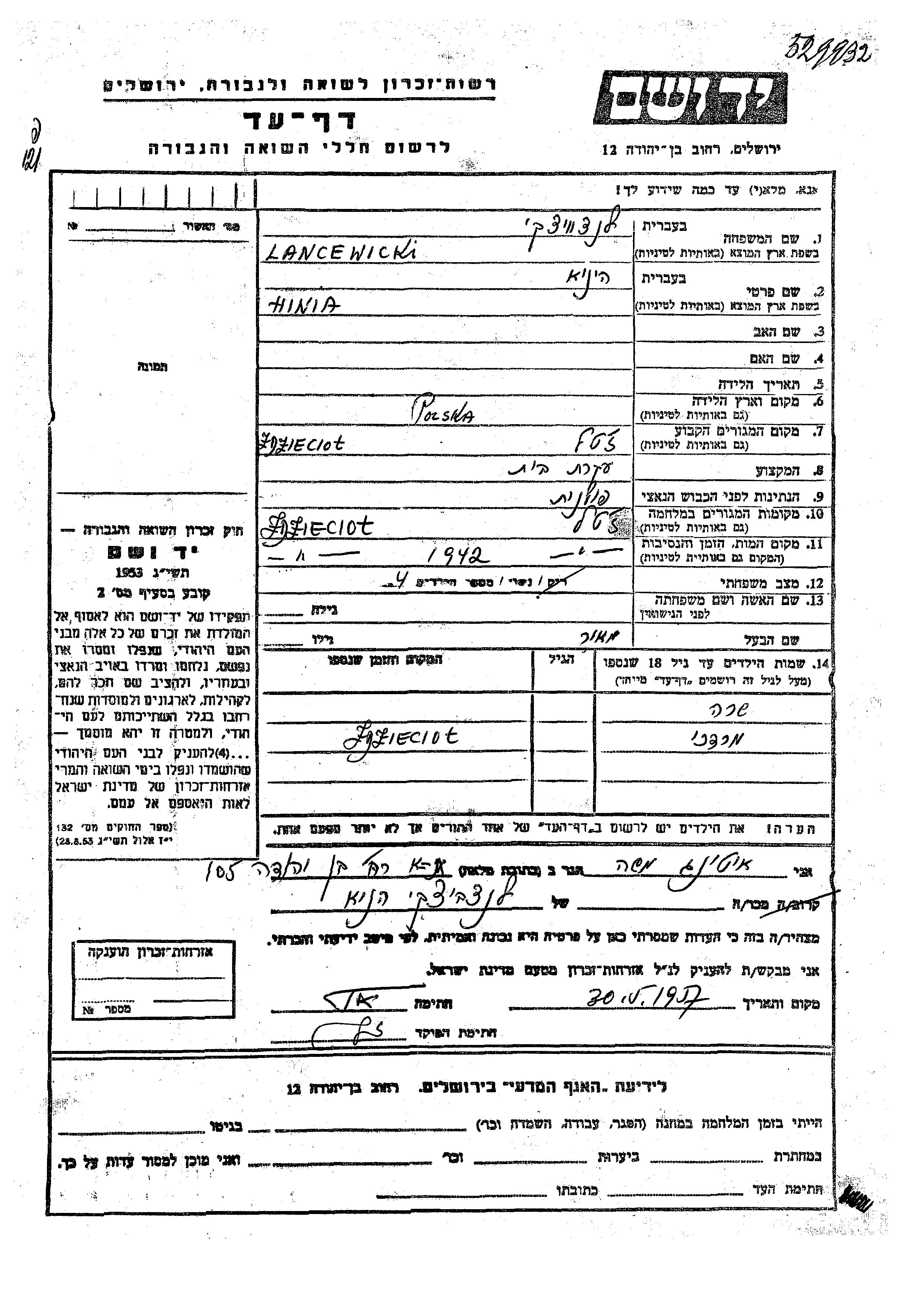 Яд Вашем - Листы свидетельских показаний Мемориального фонда