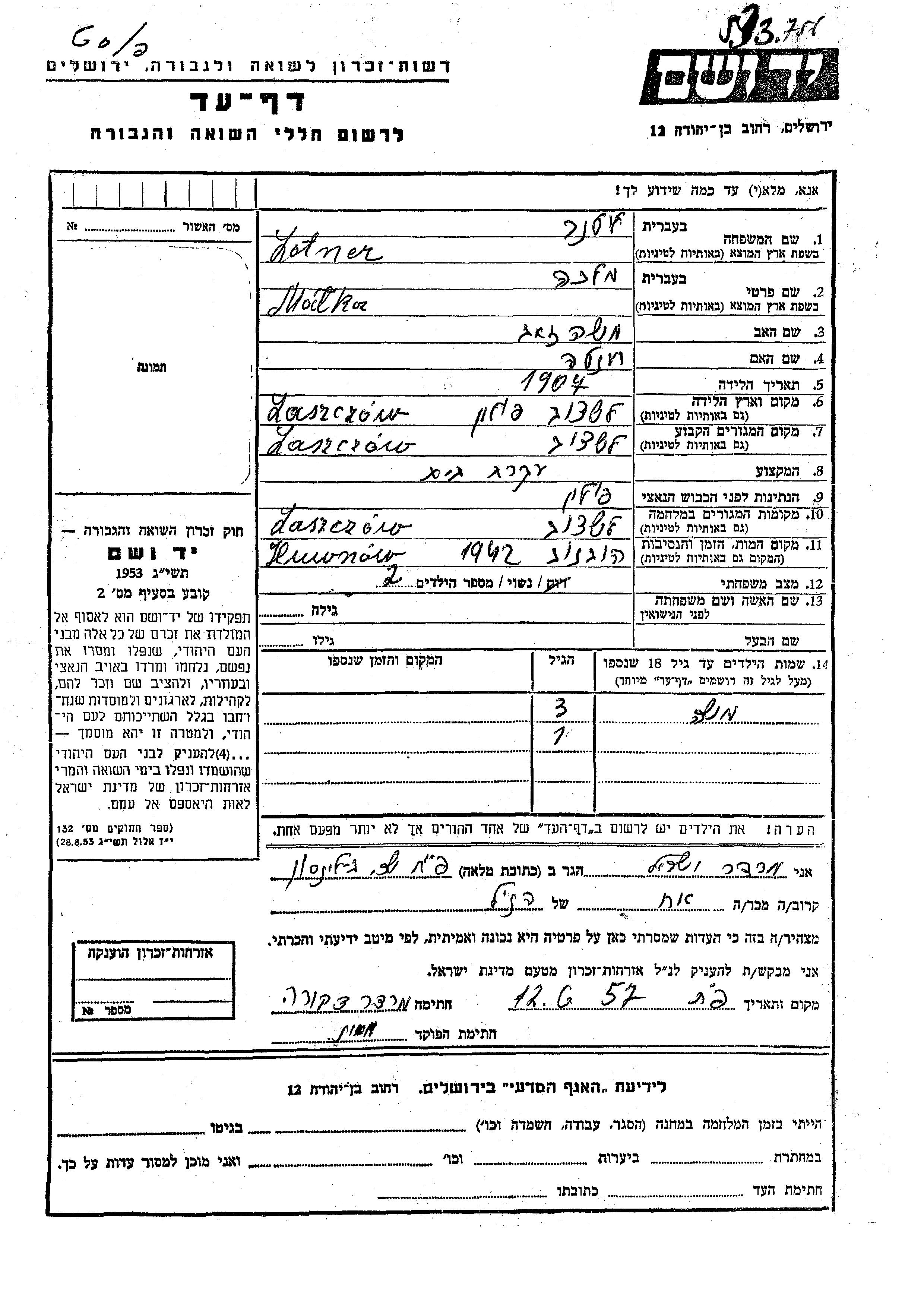 Лотнер Имя неизвестно Лащув, Польша Лист свидетельских показаний