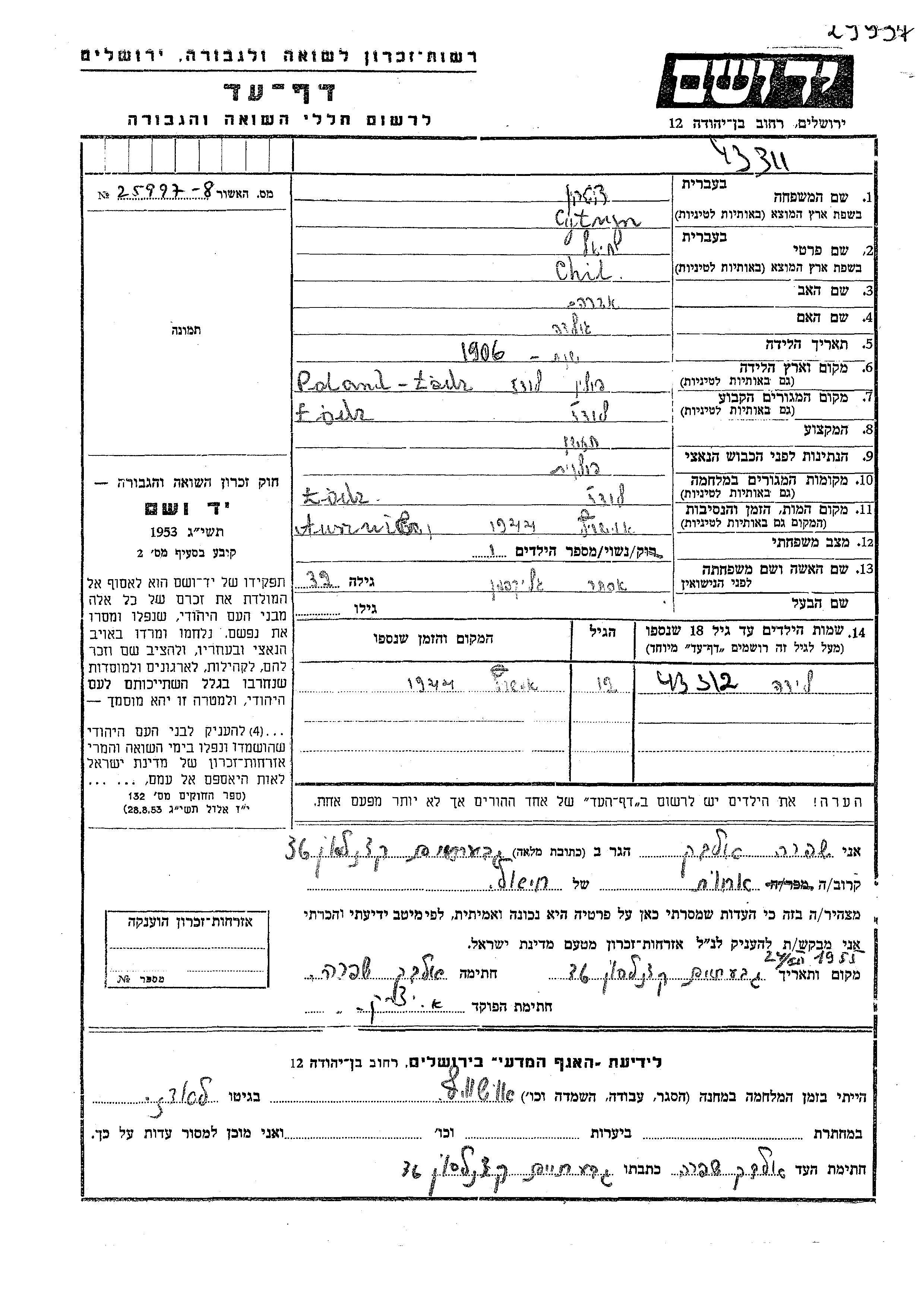 Яд Вашем - Листы свидетельских показаний Мемориального фонда