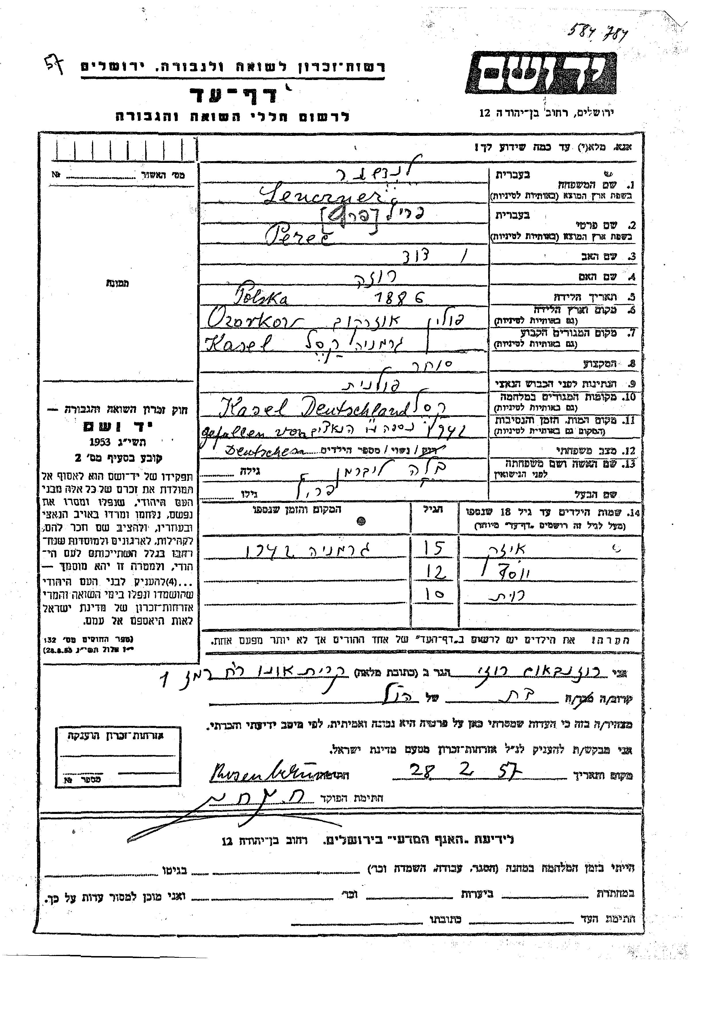 Яд Вашем - Листы свидетельских показаний Мемориального фонда