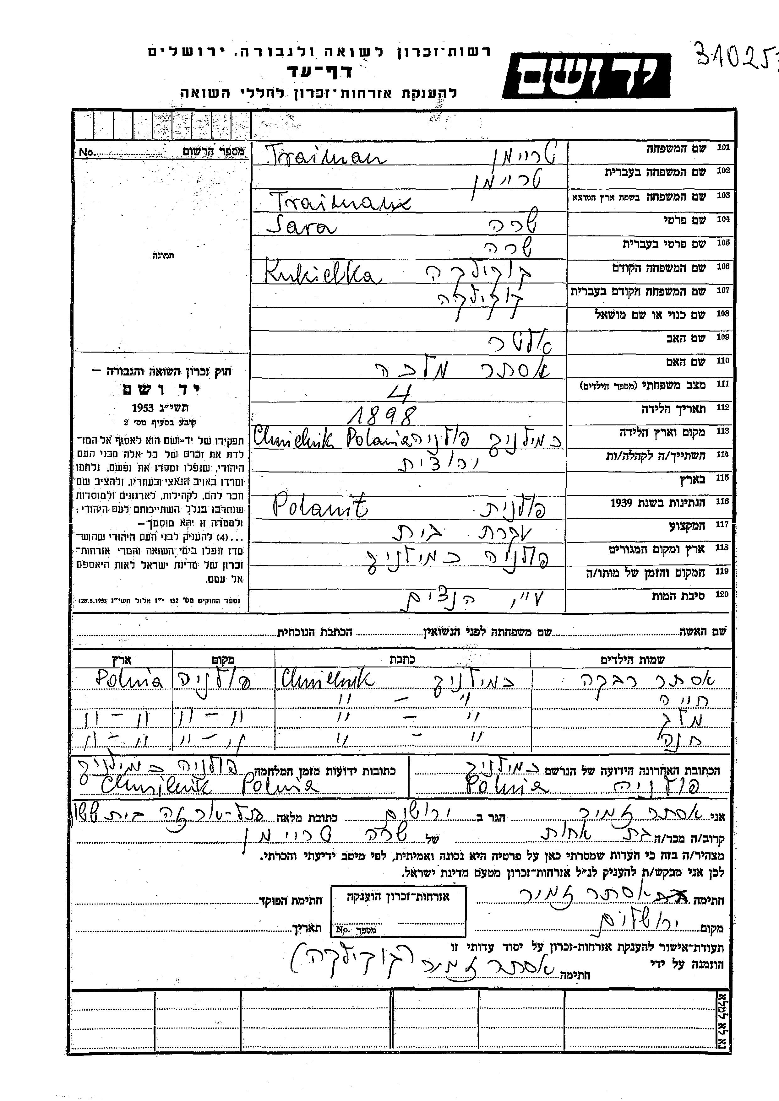 Яд Вашем - Листы свидетельских показаний Мемориального фонда