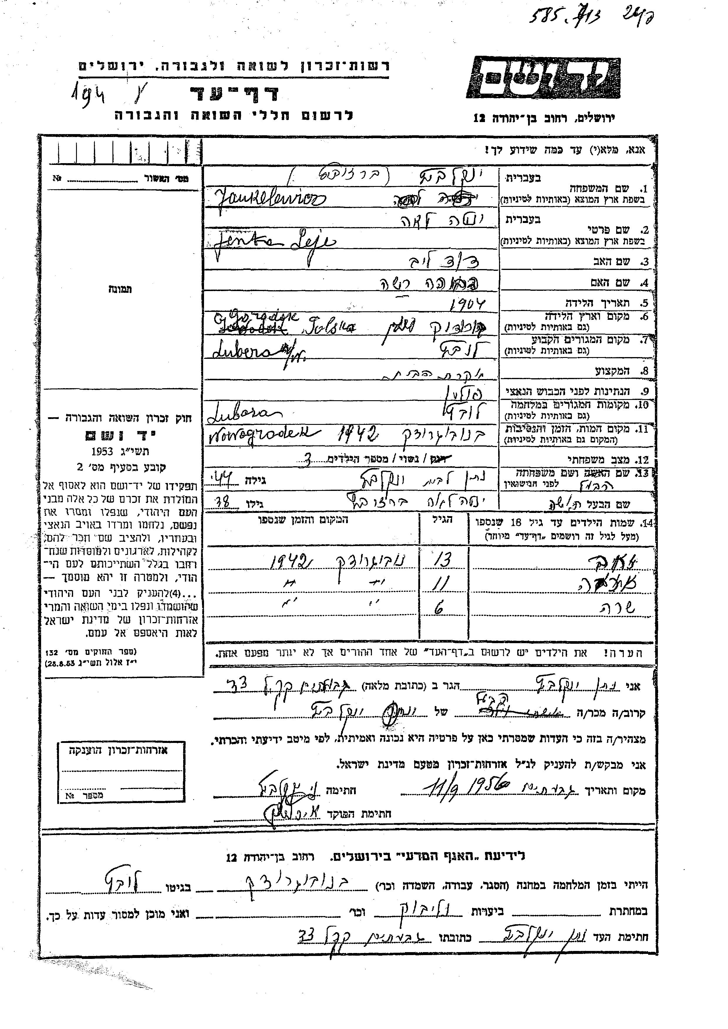Яд Вашем - Листы свидетельских показаний Мемориального фонда