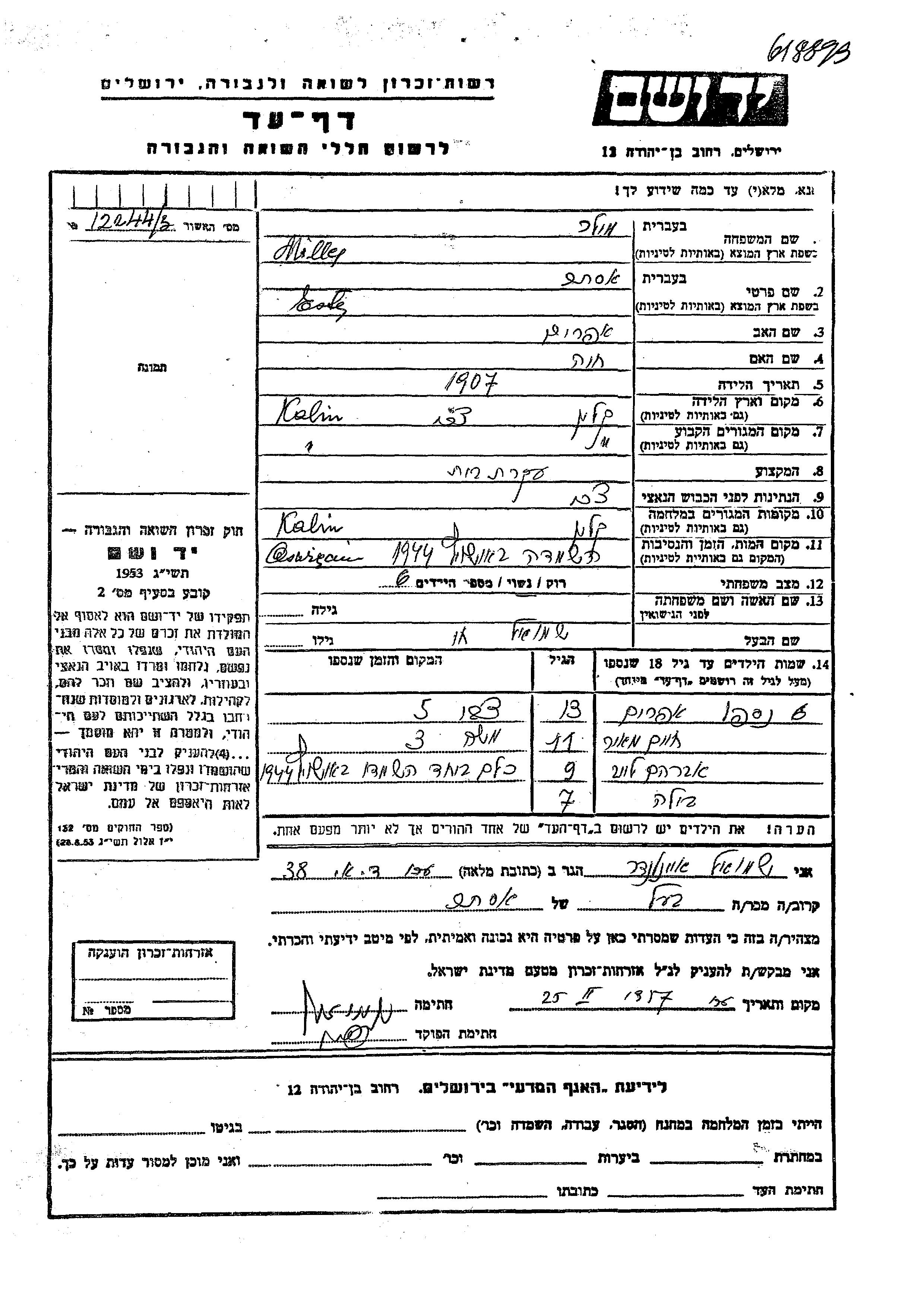 Яд Вашем - Листы свидетельских показаний Мемориального фонда