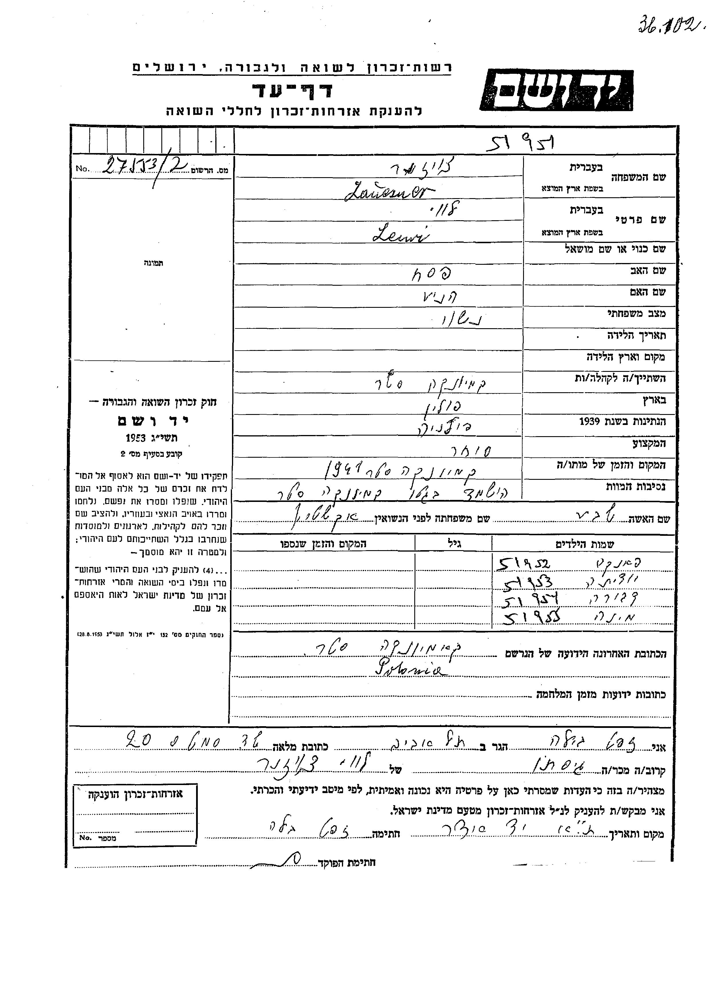 Яд Вашем - Листы свидетельских показаний Мемориального фонда