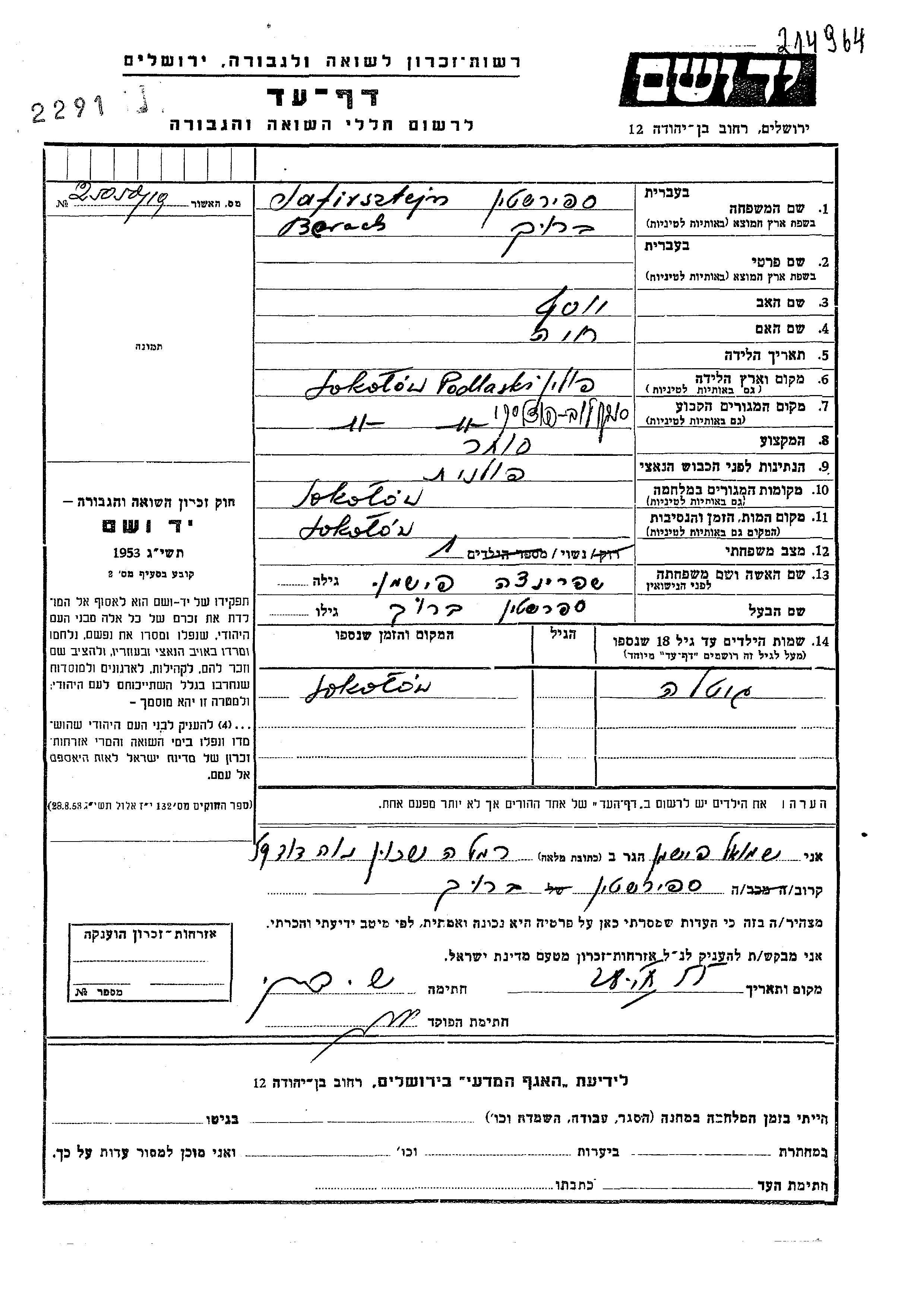 Поиск подателя Листа свидетельских показаний. Поиск по любому имени, включая уменьшительное или прозвище