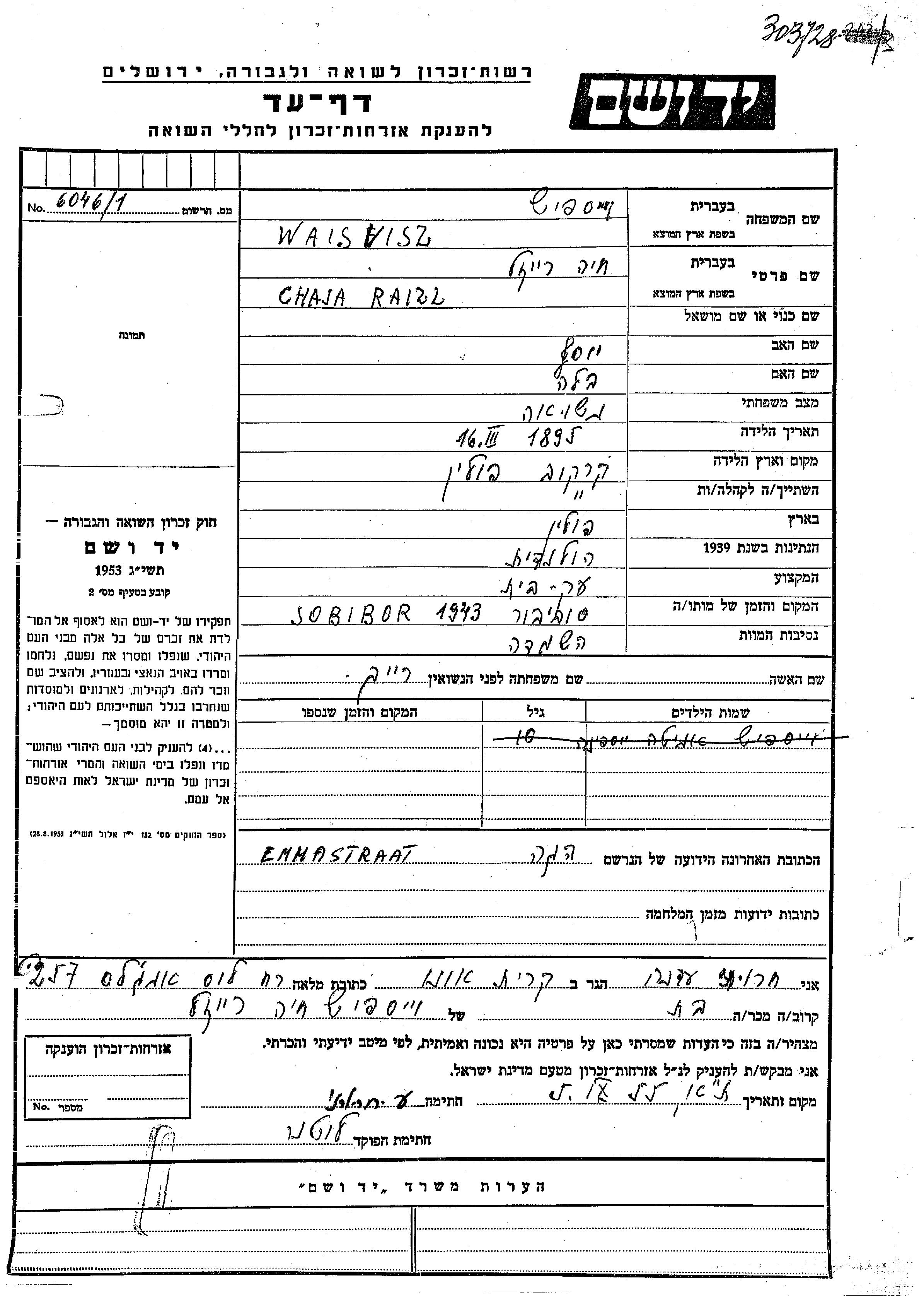 Яд Вашем - Листы свидетельских показаний Мемориального фонда