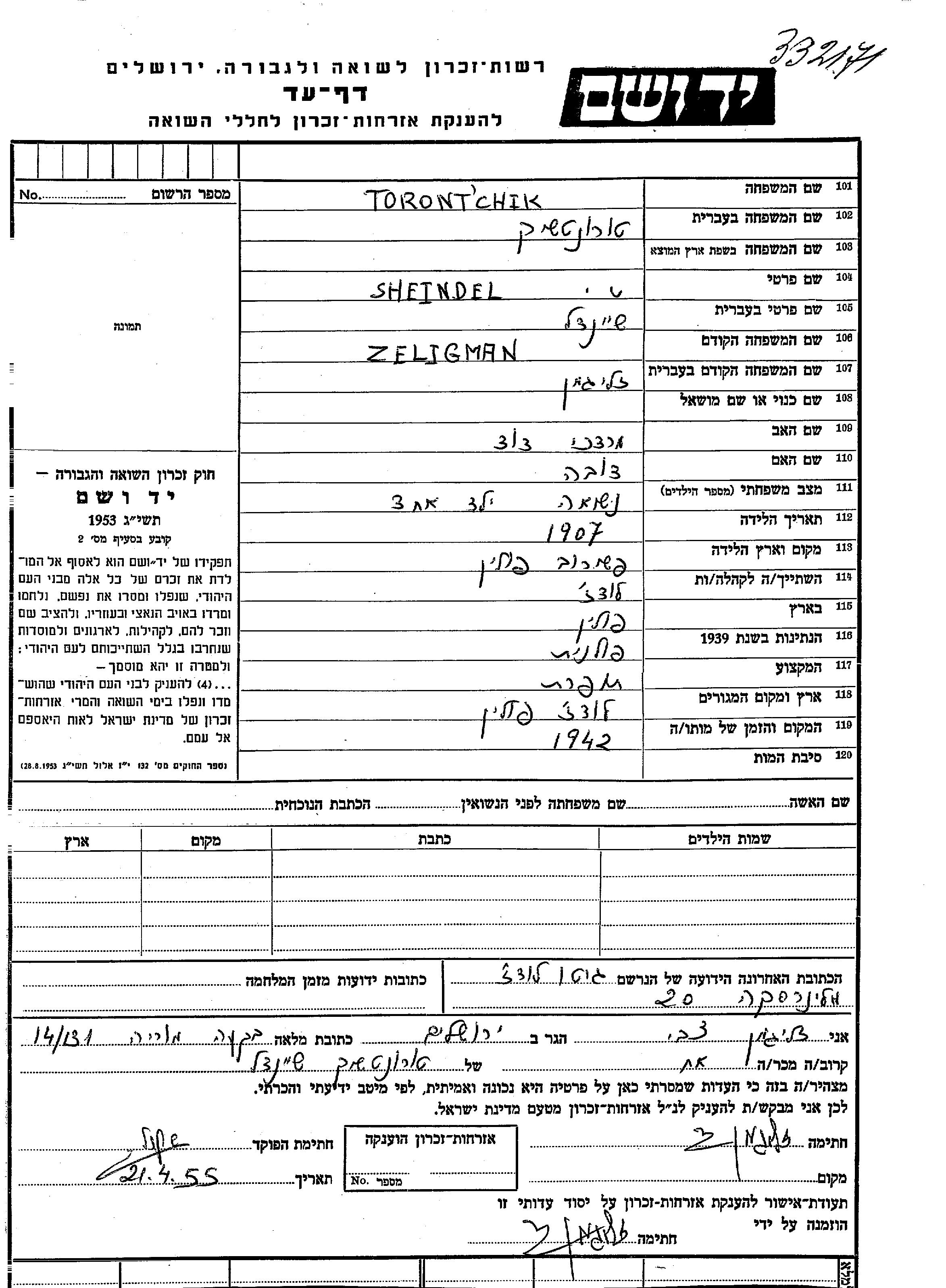 Яд Вашем - Листы свидетельских показаний Мемориального фонда