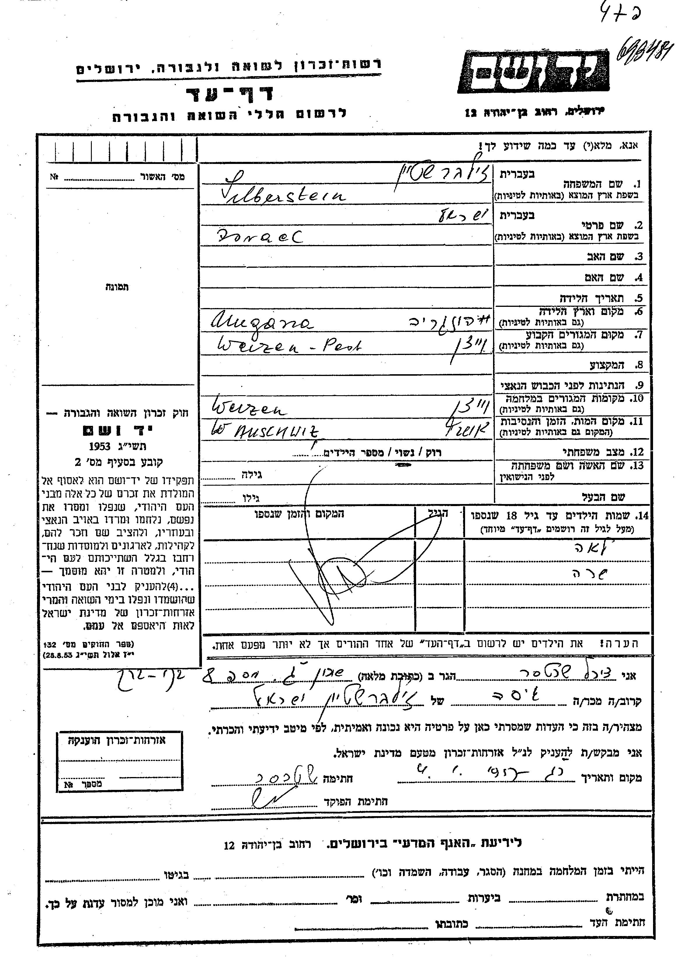 Яд Вашем - Листы свидетельских показаний Мемориального фонда